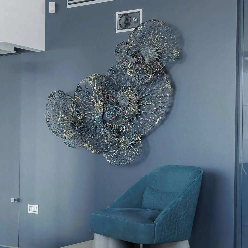 Эта скульптура не просто украшает интерьер, она создаёт его. Она задаёт ритм пространству, погружая его в атмосферу современного искусства, открытого новым интерпретациям. Она не навязывает себя, а действует тонко и уверенно, притягивая взгляд, завораживая сложной простотой и балансом между материальностью и иллюзией. Это объект, который оживает при изменении освещения, становясь то лёгкой паутиной теней, то светящейся картой рельефа неведомого подводного мира.