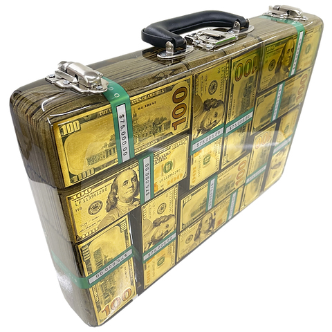 Арт-объект из эпоксидной смолы «Чемодан долларов» — это вызывающий и провокационный символ эпохи, в которой материальное стало иконой. Визуально эффектная композиция представляет собой чемодан, заполненный стопками купюр по 100 долларов, каждая из которых залита в кристально прозрачную эпоксидную смолу. Купюры — стилизованные, сияющие под светом, словно отражение самых сокровенных желаний, амбиций и иллюзий.