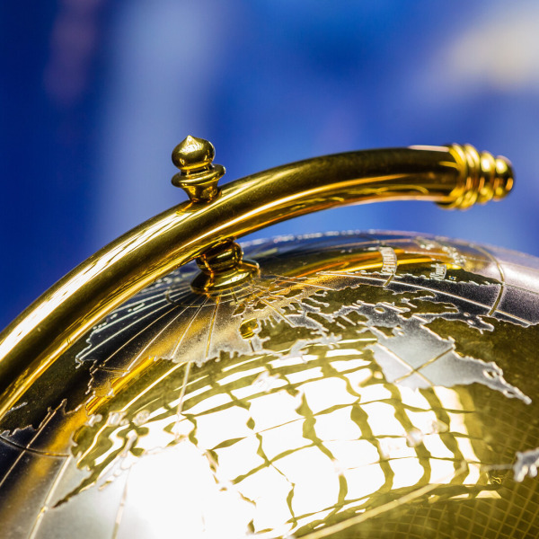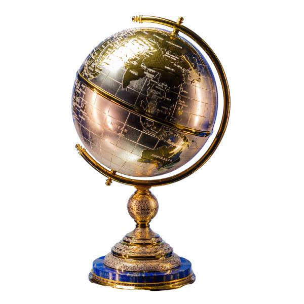 Светлое золото и контрастные элементы декора создают впечатление, что глобус парит над землей, будто держа в себе силу притяжения всей планеты. В каждой линии, в каждом изгибе заключена мощь — мощь, которая присуща тем, кто способен изменить ход событий и править мирами. Он символизирует контроль и порядок, которые можно навести над хаосом, когда все элементы приходят в равновесие.