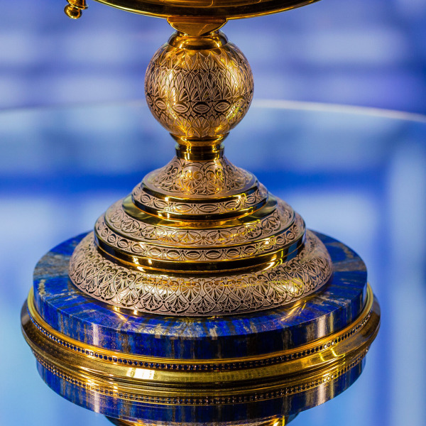 Каждый элемент композиции создан с исключительным вниманием к мелочам, от утонченных линий меридианов до богатой орнаментации, которая превращает этот глобус в произведение искусства. Тончайшие орнаменты, покрытые 24-каратным золотом, сияют на поверхности, словно символизируя бесконечную роскошь и блеск, которые окружают их обладателя.
