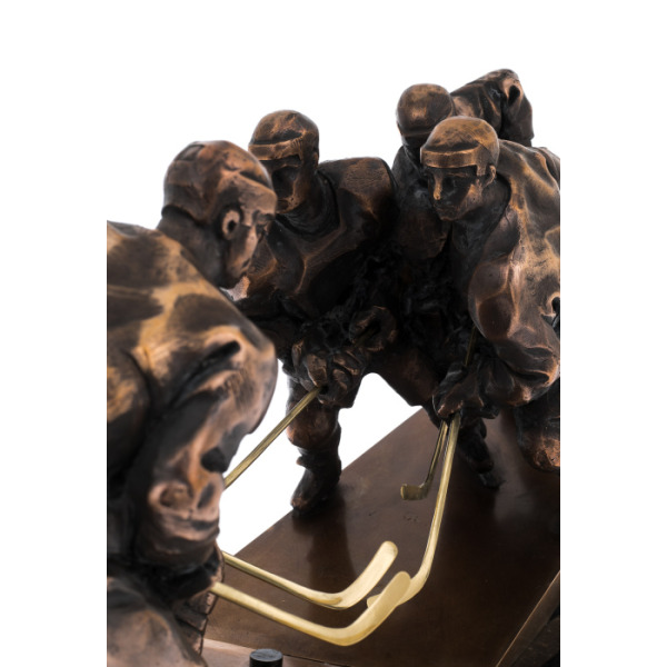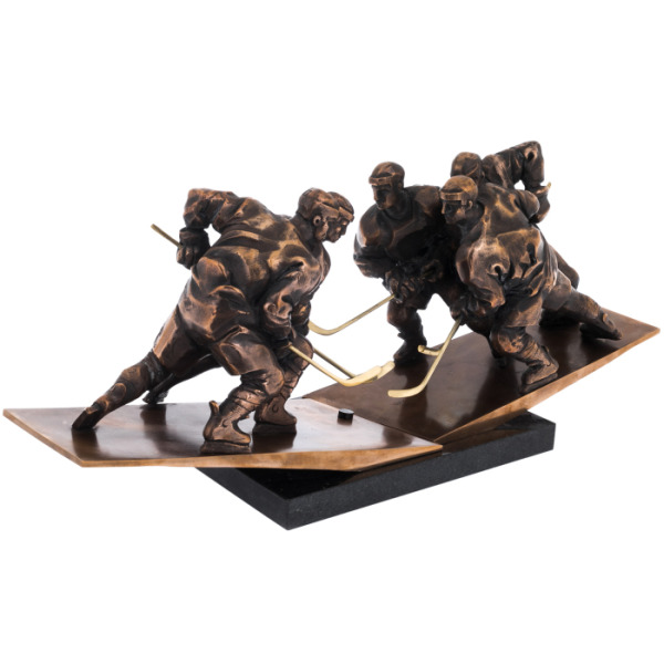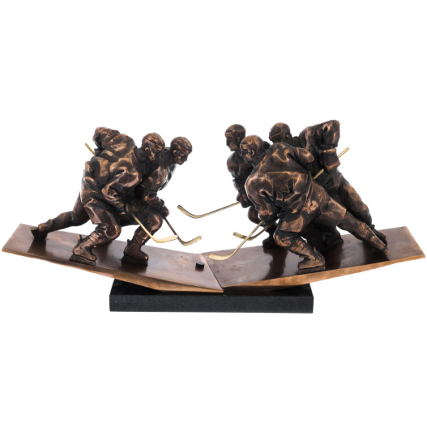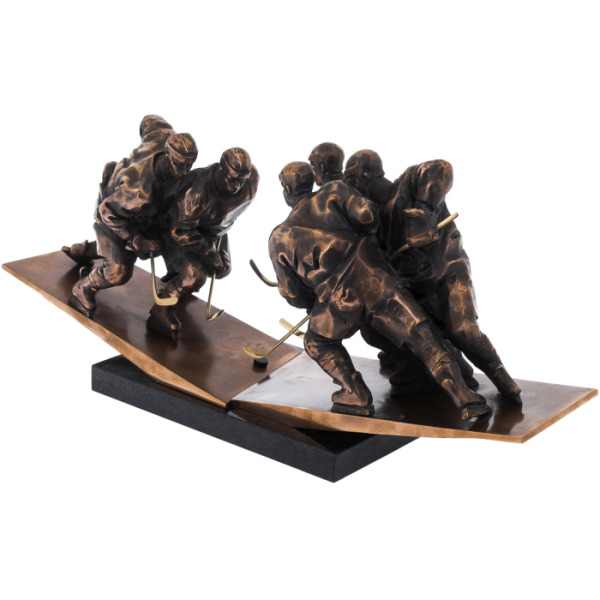 Композиция "Ледовая битва" — прекрасный сувенир человеку, чья деятельность связана со спортом, а также хоккеисту или тренеру. Автору удалось передать всю динамику и азарт хоккейного матча. Художник вложил в изображение стремительность скольжения на коньках, наделил образы реалистичностью и естественностью. Положение тел, клюшки и предметов формы – все это говорит о тщательной работе мастера. Каждый образ продуман с точки зрения характера, манеры игры и эпохи. И каждый спортсмен воплощен в динамике, в узнаваемом движении и настроении.