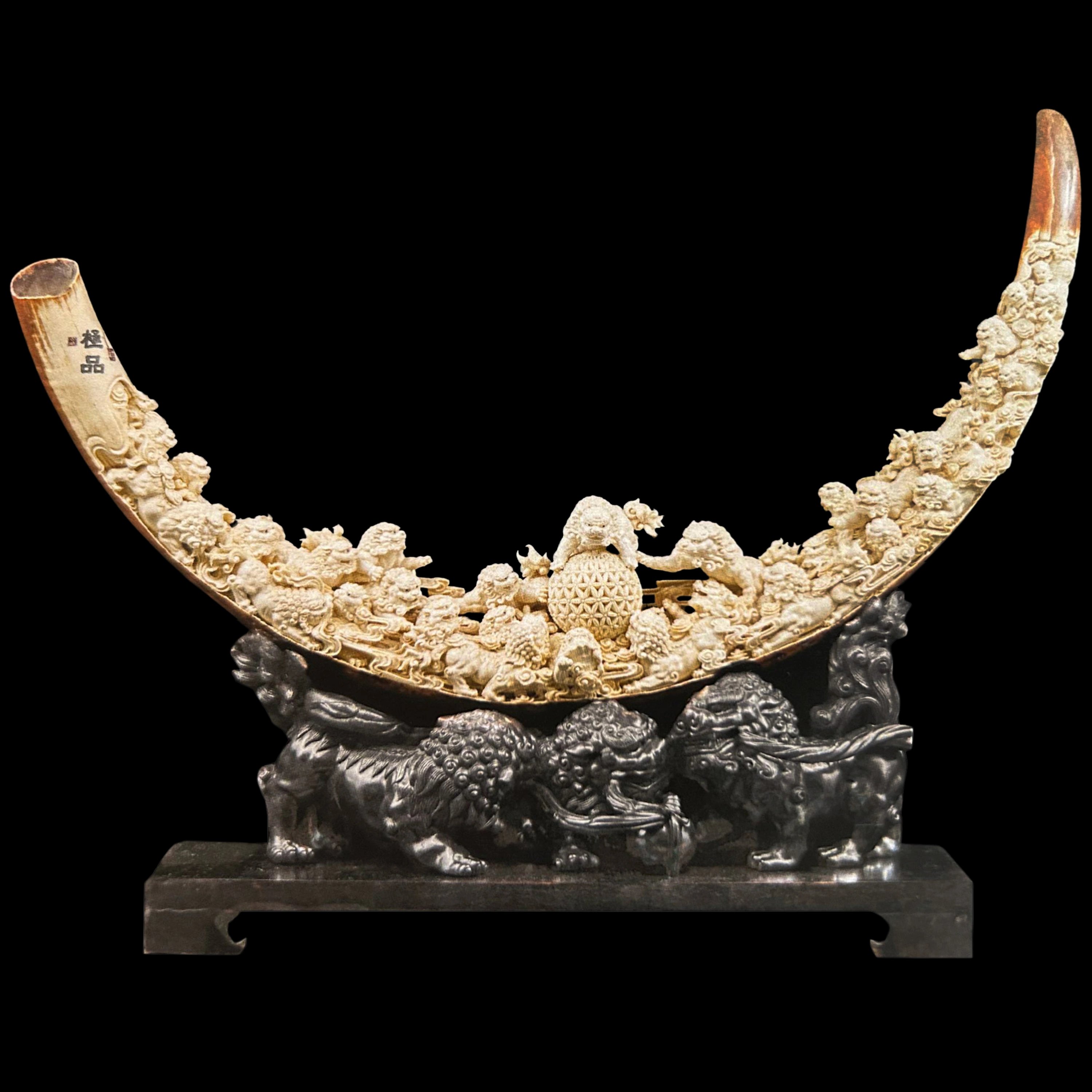 Композиция из бивня мамонта "Благоприятные львы играют с шаром"