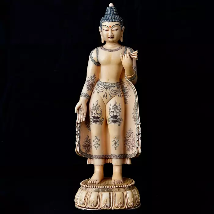 «Бог долголетия» в данном воплощении — это символ не только продолжительности, но и качества жизни: здоровья, гармонии и внутренней силы, сохраняющейся вне времени. Композиция объединяет редкость бивня мамонта, утончённую работу мастера и глубокую символику, создавая образ, наполненный спокойствием, устойчивостью и благоприятной энергией долгой жизни.