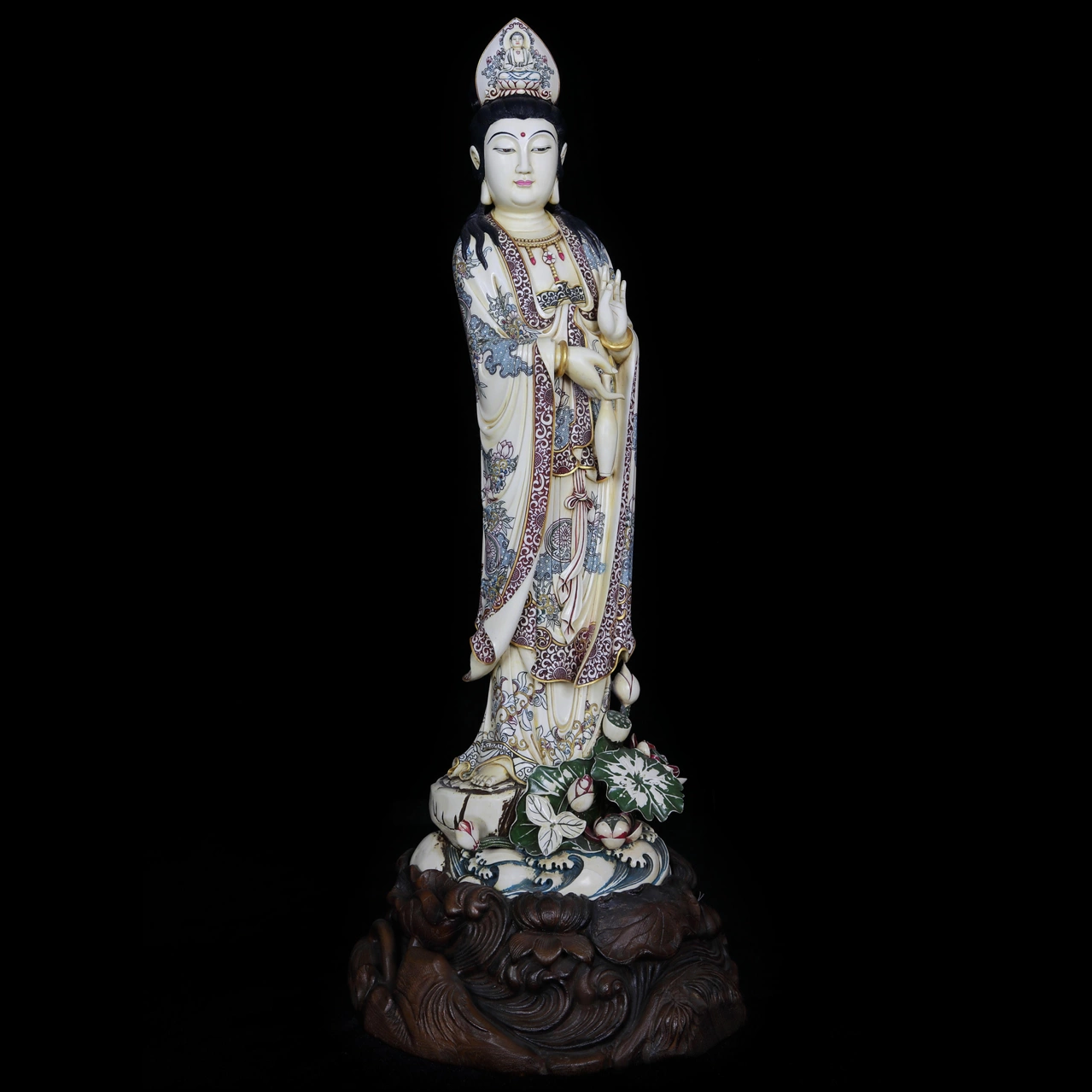 Композиция из бивня мамонта "Гуаньинь, льющая воду"