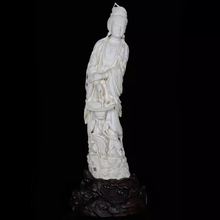 Композиция из бивня мамонта "Гуаньинь с корзиной рыбы"