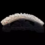 Композиция из бивня мамонта «К Тенгту» представляет собой выразительное произведение, в котором природная форма материала превращена в динамичную сцену движения и силы. Изогнутая линия бивня задаёт ритм всей композиции, словно поднимая её над пространством, а благородный кремовый оттенок с мягкими переходами света усиливает ощущение живой материи. Резное основание тёмного дерева создаёт контраст и придаёт работе устойчивость, подчёркивая её статус как коллекционного предмета высокого уровня.