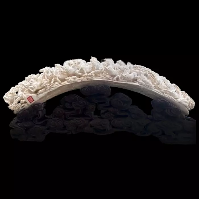 Тонкость кантонской резьбы проявляется в детальной проработке грив, копыт и пластики тел, а также в сложной многослойности рельефа, благодаря которой композиция воспринимается глубокой и живой. Скачущие лошади символизируют силу и жизненную энергию, воплощая бесконечную жизненную силу и надежду. Этот образ наполняет предмет внутренним смыслом — как знак стремления, устойчивости и движения вперёд, отражающий уверенность в будущем и непрерывность жизненного пути.