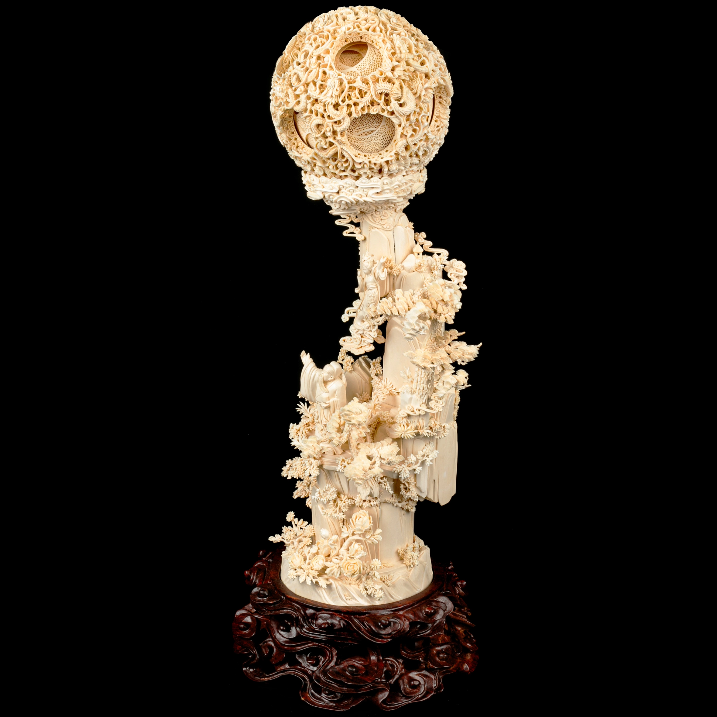 Композиция из бивня мамонта с кантонским шаром "Поднимаю бокал и приглашаю луну"