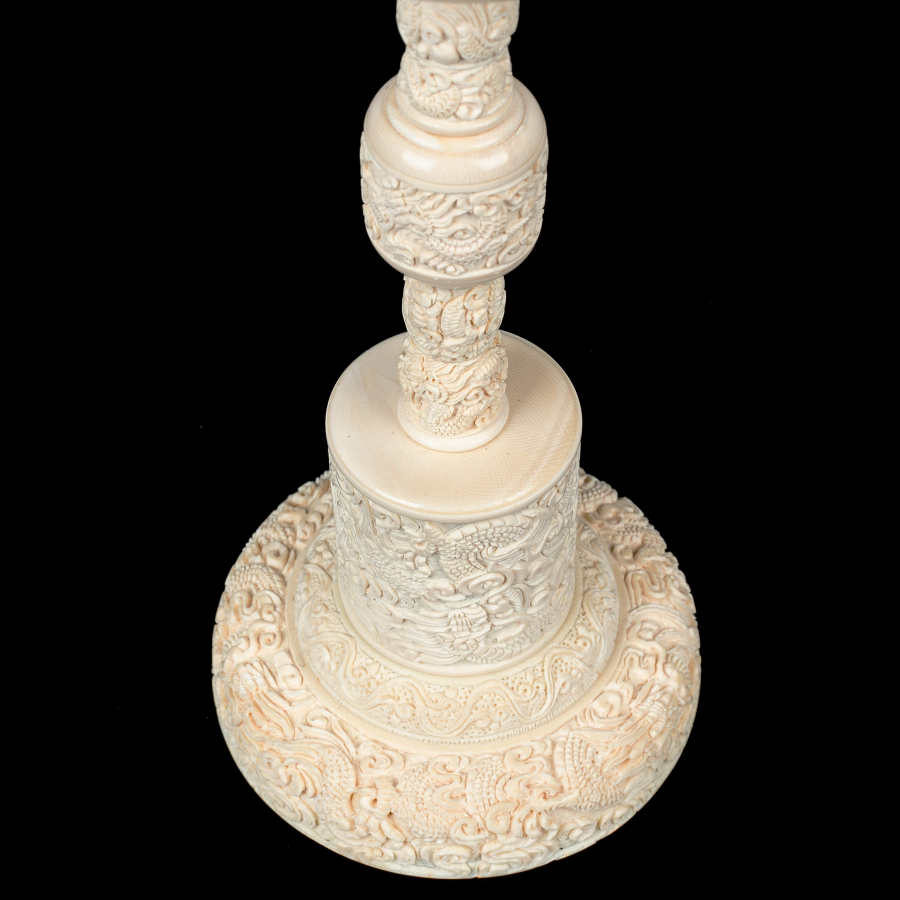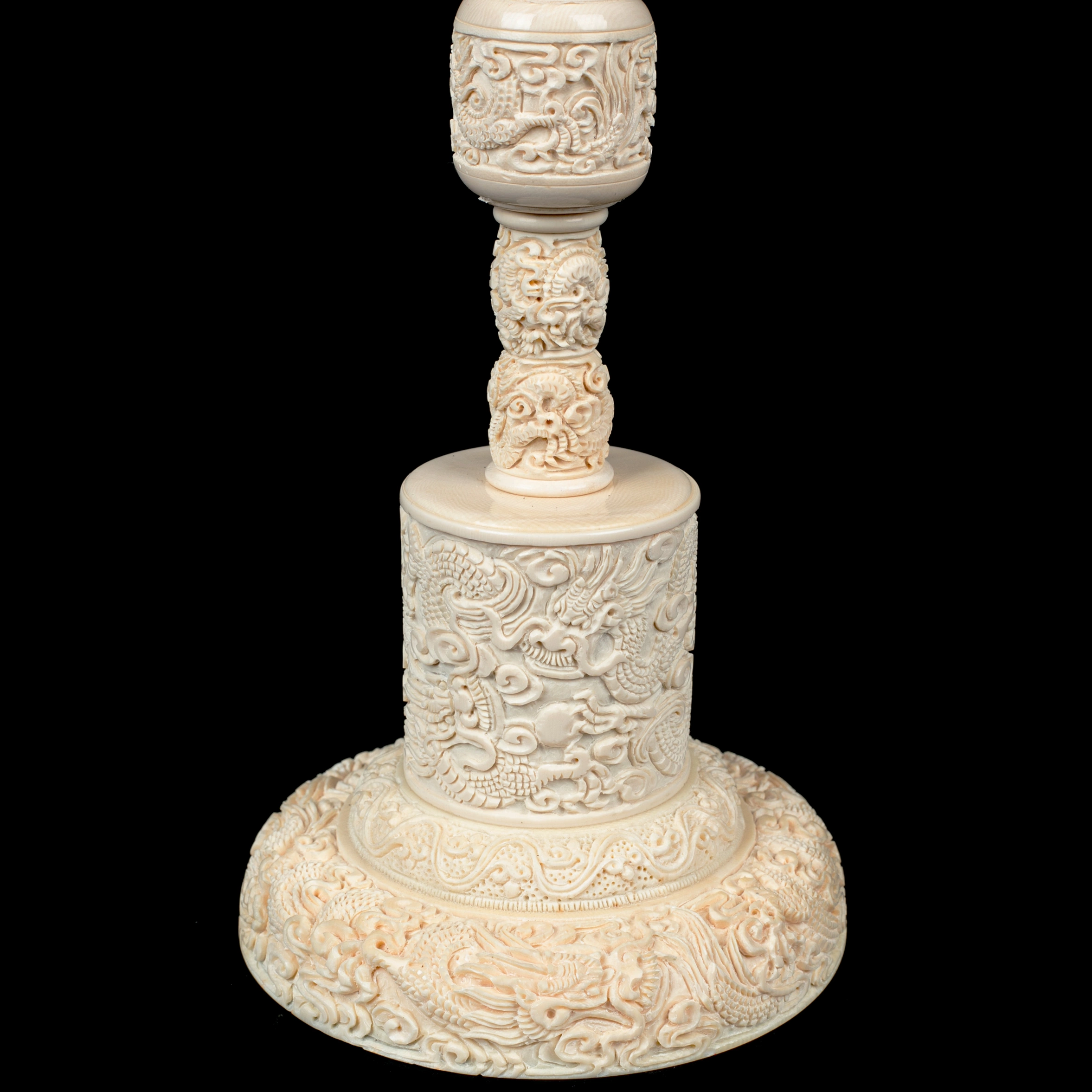 Композиция из бивня мамонта с кантонским шаром "Дракон и феникс"