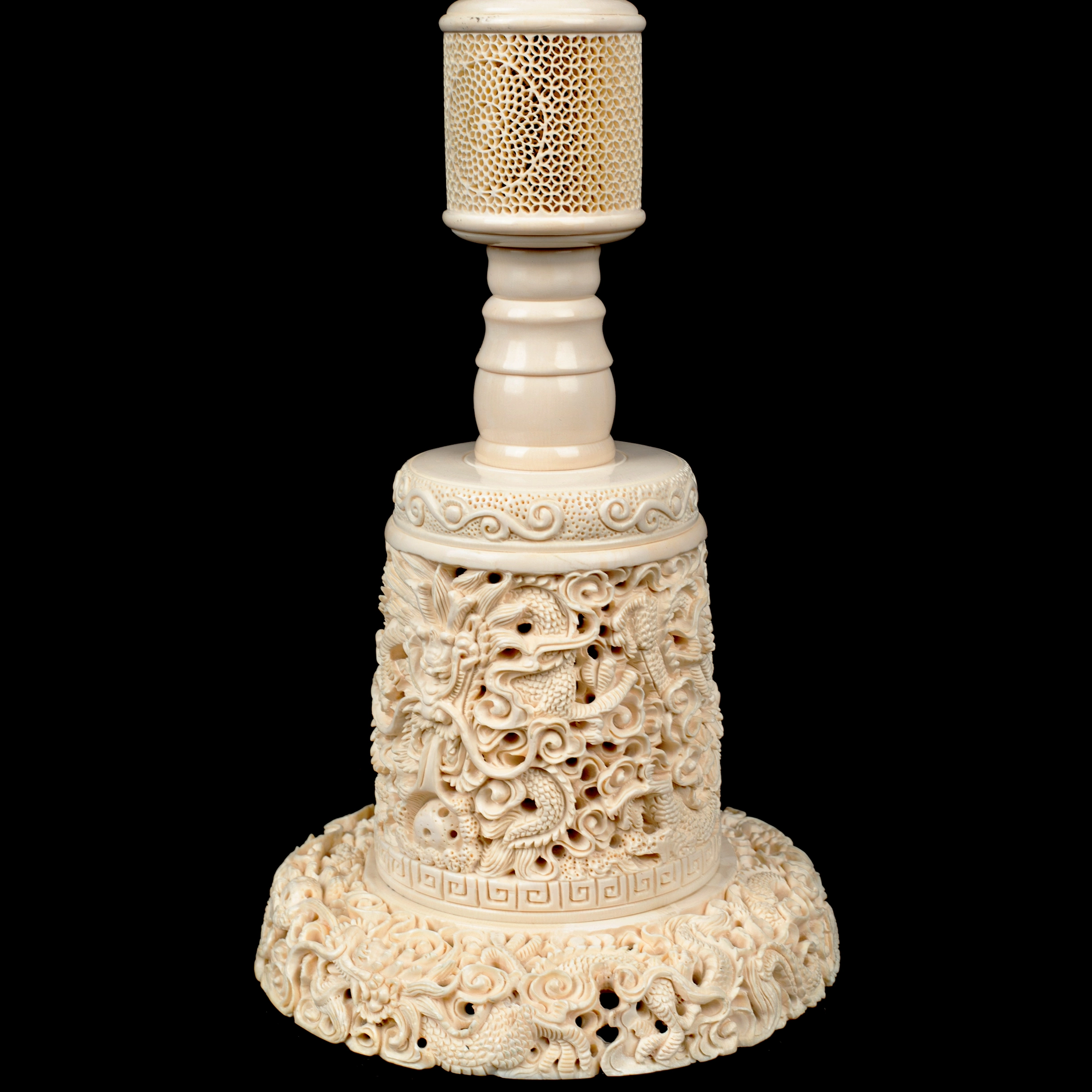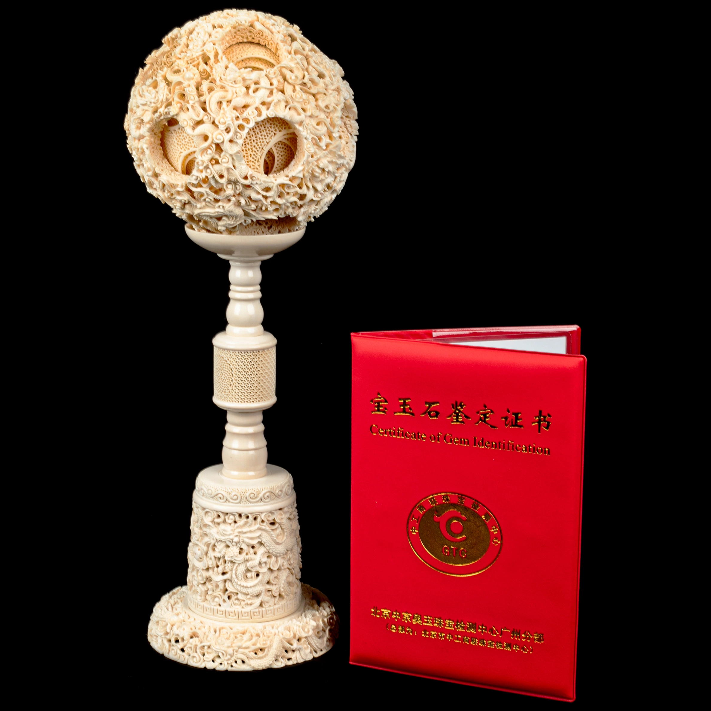 Композиция из бивня мамонта с кантонским шаром "Дракон"
