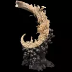 Смысл композиции раскрывается через образ Царя обезьян: подлинная слава рождается из самопревосхождения и дисциплинированного духовного пути. Возвращение — не только торжество, но и итог испытаний, внутренней трансформации, обретённой мудрости. Контраст светлой резьбы бивня и тёмного резного основания, напоминающего корни древнего дерева с налившимися плодами, усиливает ощущение космического масштаба и земной опоры. Перед зрителем — не просто декоративный объект, а художественный манифест о победе духа, о славе, достигаемой через испытания, и о вечном стремлении к совершенству.