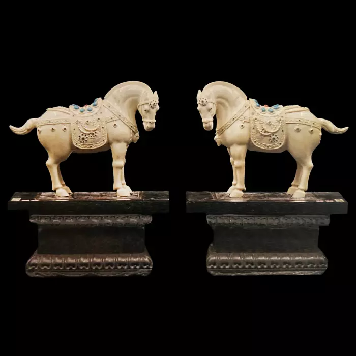 Резьба по бивню мамонта позволяет передать мягкие линии тела животных, плавные изгибы гривы и мельчайшие детали декоративных элементов. Благодаря этому фигуры выглядят живыми и наполненными внутренней силой, а вся композиция приобретает ощущение благородства и величия.