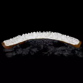 Вдоль поверхности бивня развёрнута оживлённая сцена, наполненная множеством фигур, каждая из которых участвует в общем праздничном действии. Здесь можно увидеть персонажей, погружённых в веселье, общение, музыку и ритуальные действия. Их жесты и позы передают радость, лёгкость и внутреннюю свободу, создавая ощущение непрерывного праздника, в котором участвуют и небесные, и земные силы.
