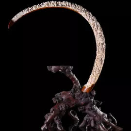 Композиция из бивня мамонта «Вселенское сияние Будды» представляет собой монументальное произведение, в котором природная форма материала превращена в символическое изображение духовного пути и просветления. Высокая дуга бивня, устремлённая вверх и образующая почти замкнутый круг, воспринимается как образ бесконечности и целостности мироздания.