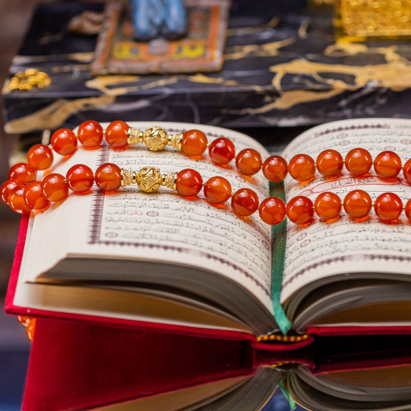 Чётки из сердолика, которые нежно обвивают композицию, являются символом земной мудрости, силы и защиты. Этот камень, как частица самого сердца Востока, переливается теплыми оттенками заката, принося покой и гармонию в любое пространство. Каждая бусина отражает свет, словно маленький огонь, согревающий душу и ум.