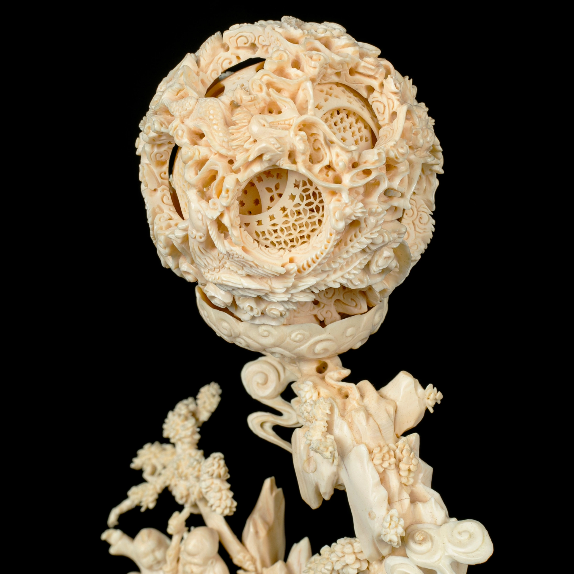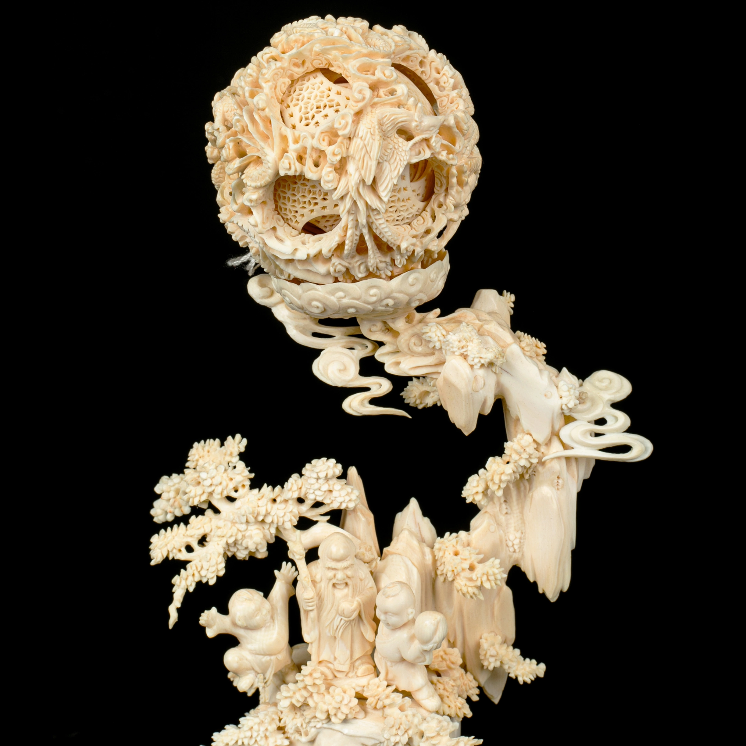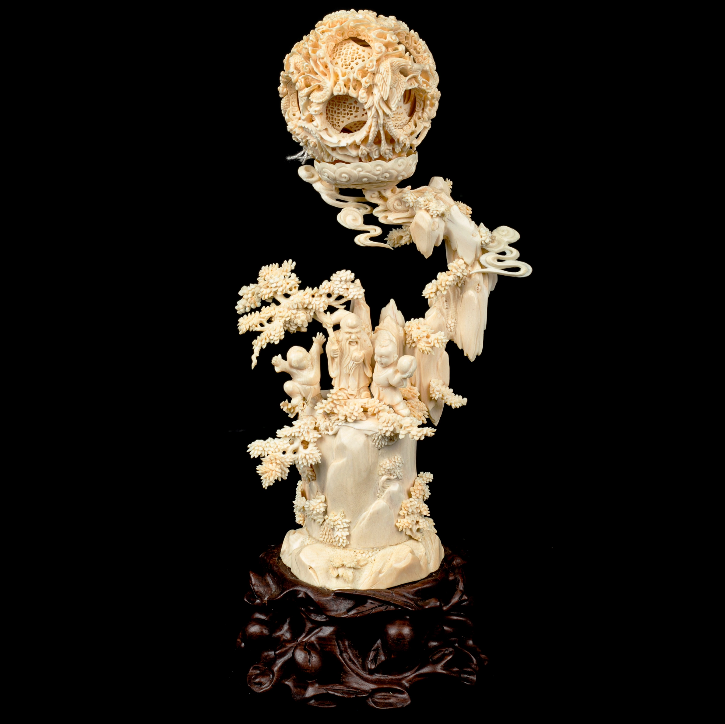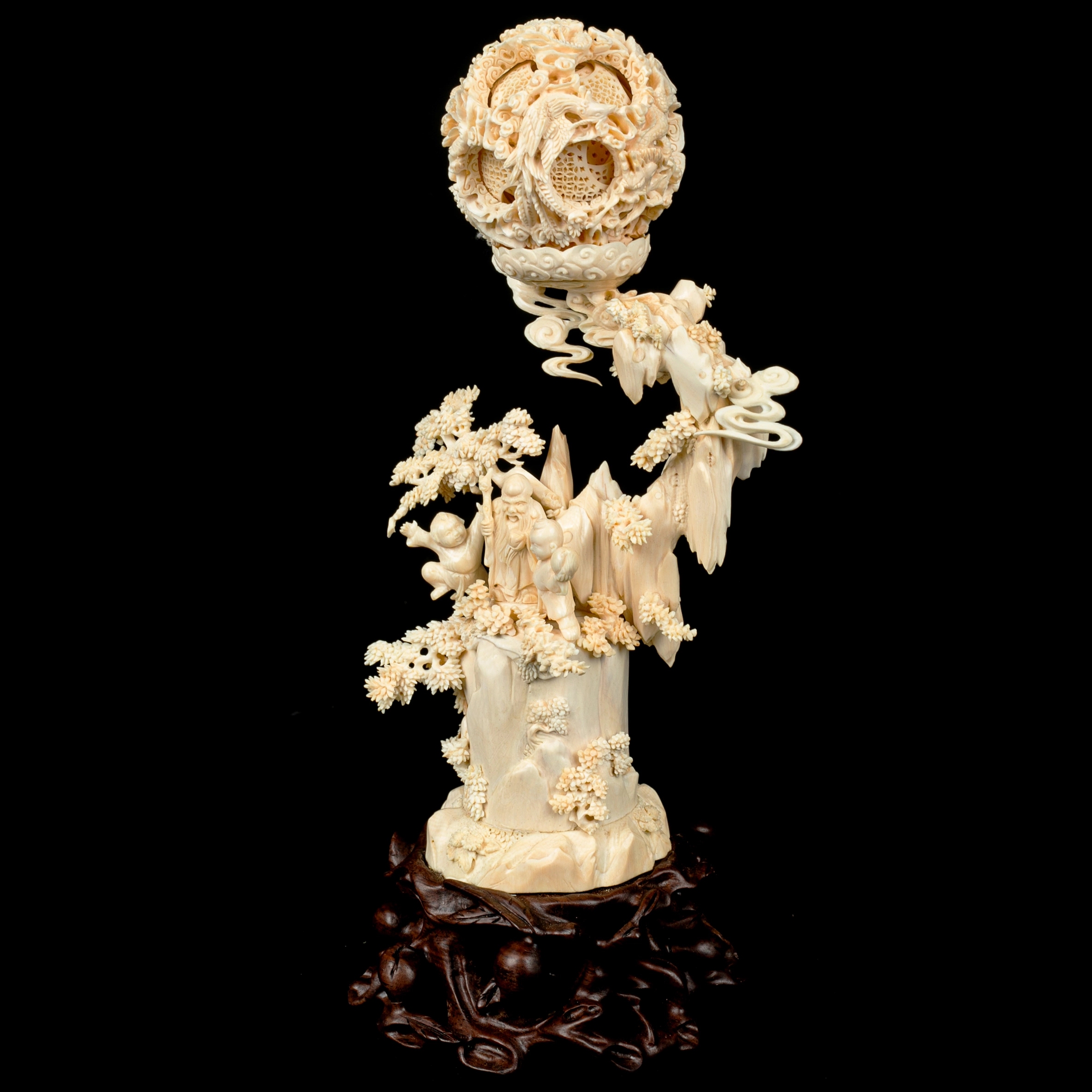 Композиция из бивня мамонта с кантонским шаром "Мудрец"