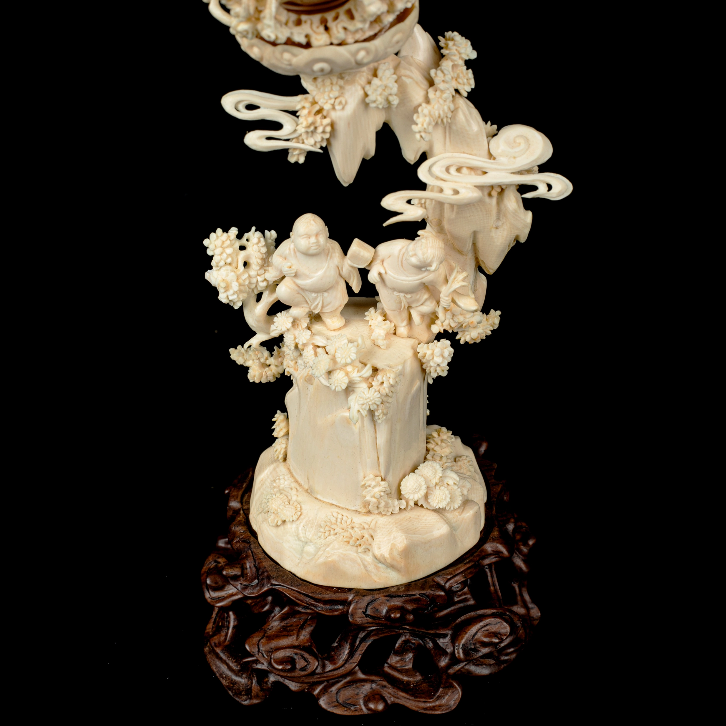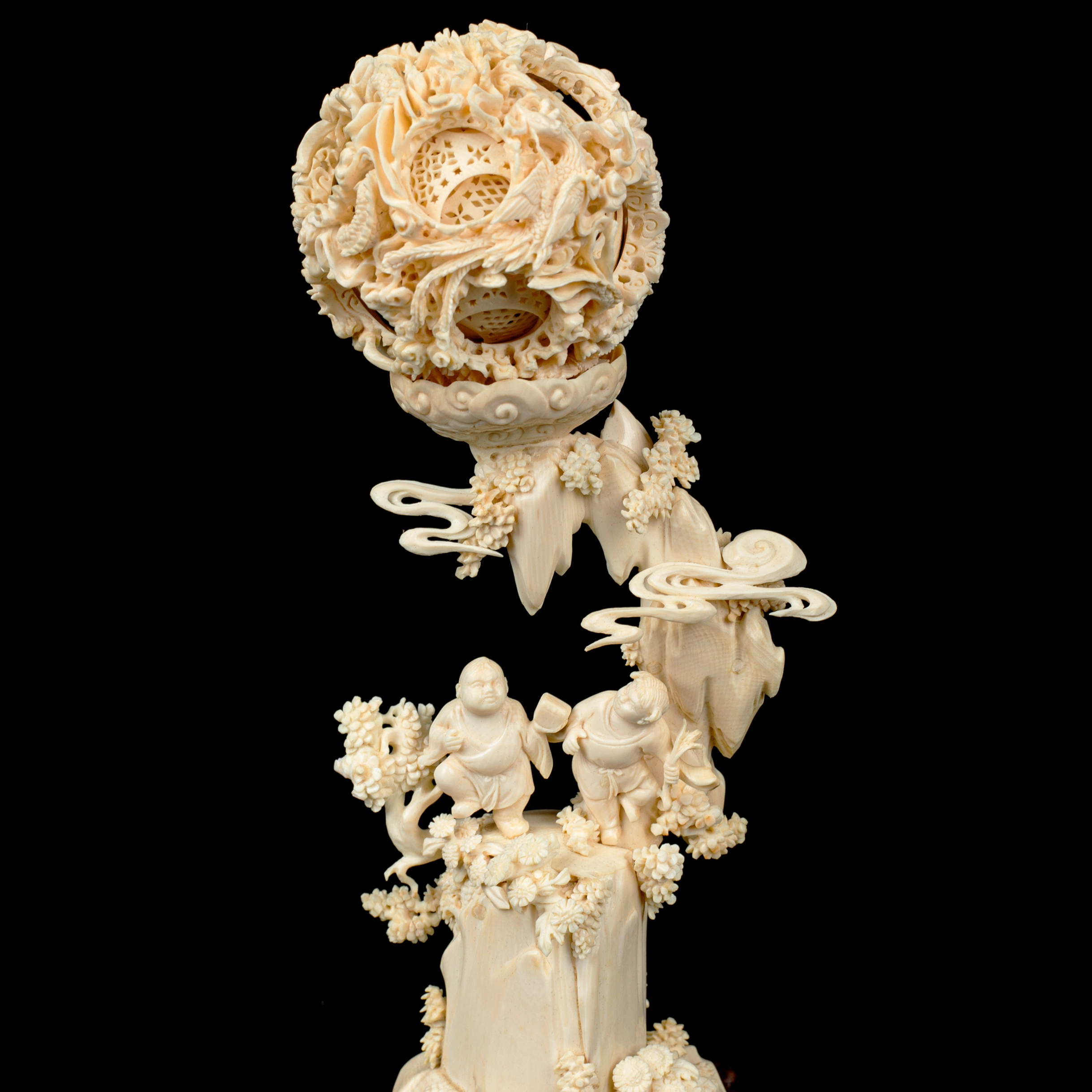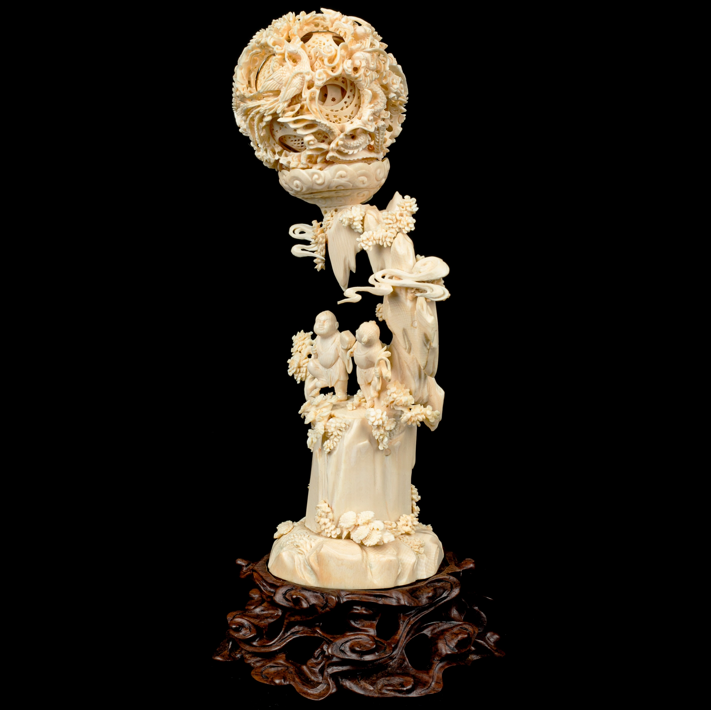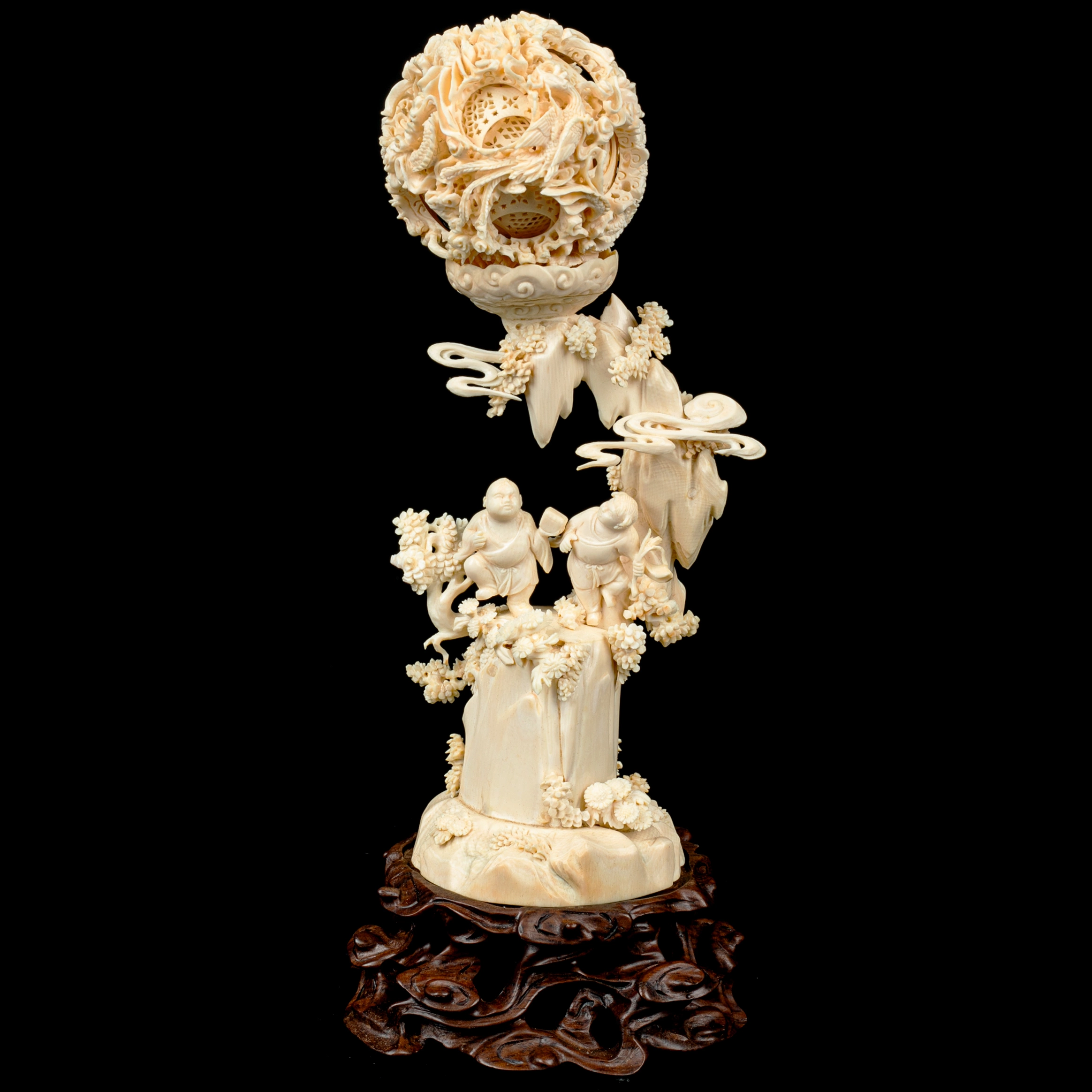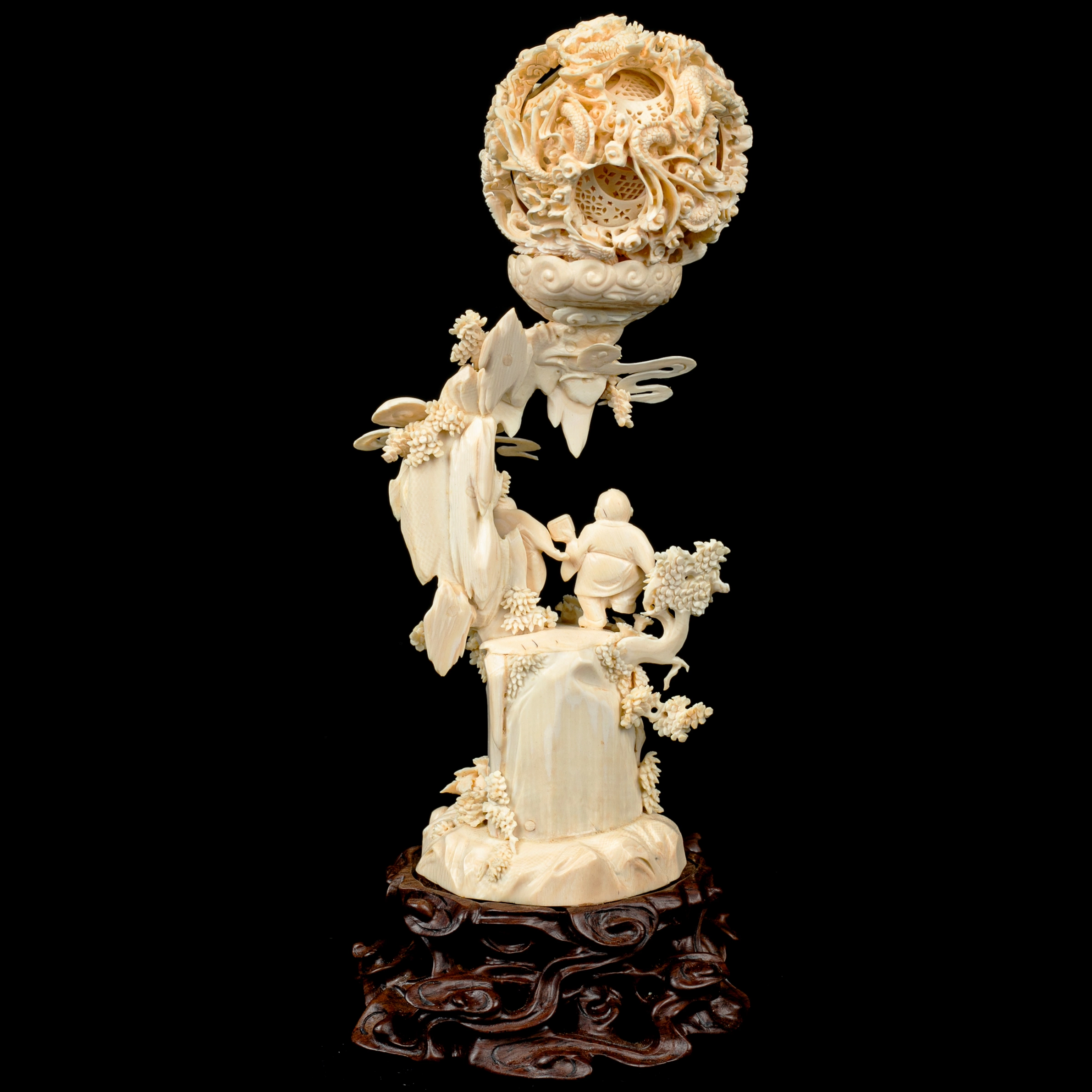 Композиция из бивня мамонта с кантонским шаром "Отдых"