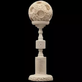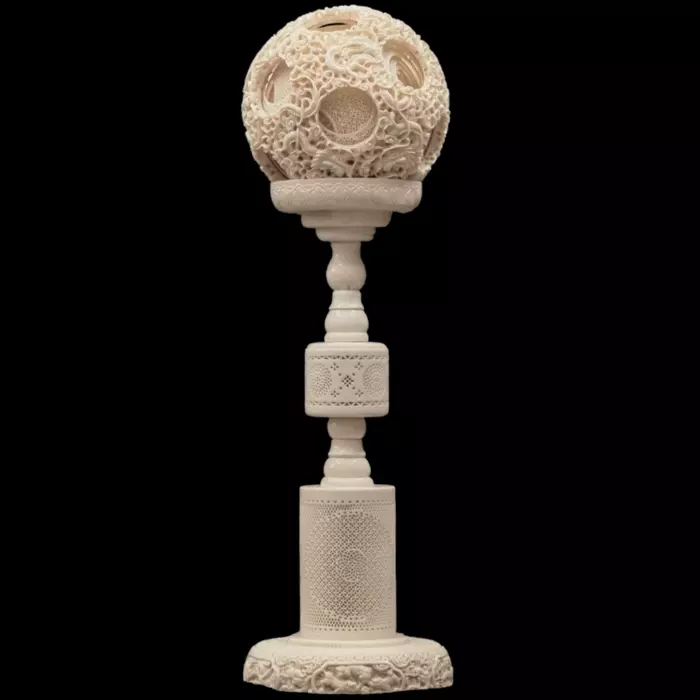 Кантонский шар из слоновой кости, известный также как «призрачный шар», — один из наиболее характерных видов гуанчжоуской резьбы, сформировавшийся ещё в эпоху династии Мин. Его уникальность заключается в том, что цельный фрагмент кости выдалбливается в многослойную сферу с переплетающимися ажурными оболочками. Каждый слой тонко проработан собственным сквозным орнаментом и может свободно вращаться внутри последующего, создавая впечатление лёгкости и почти невесомой прозрачности.