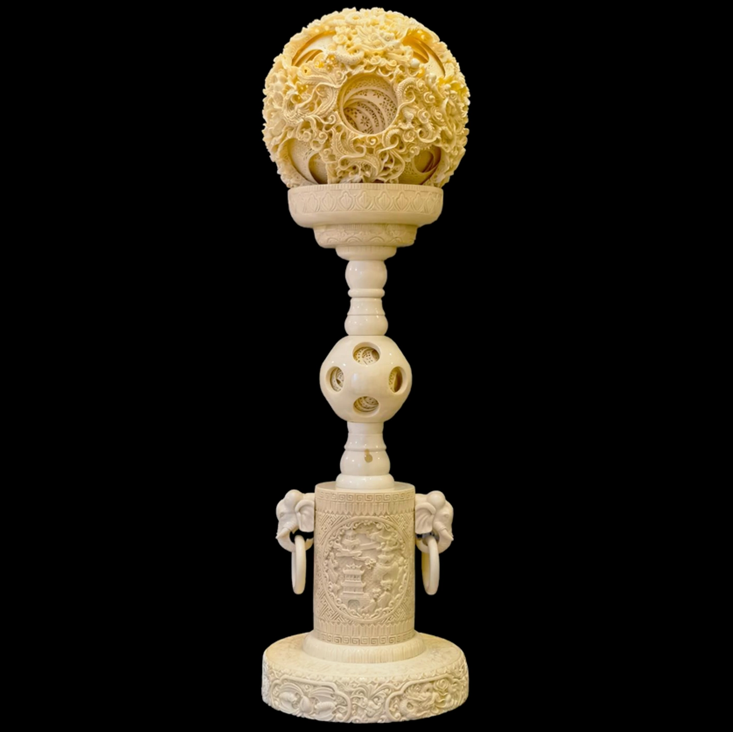 Композиция из кости с кантонским шаром "Слоны. Храм"