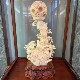 Кантонский шар из слоновой кости, известный также как «призрачный шар», — один из наиболее характерных видов гуанчжоуской резьбы, сформировавшийся ещё в эпоху династии Мин. Его уникальность заключается в том, что цельный фрагмент кости выдалбливается в многослойную сферу с переплетающимися ажурными оболочками. Каждый слой тонко проработан собственным сквозным орнаментом и может свободно вращаться внутри последующего, создавая впечатление лёгкости и почти невесомой прозрачности.