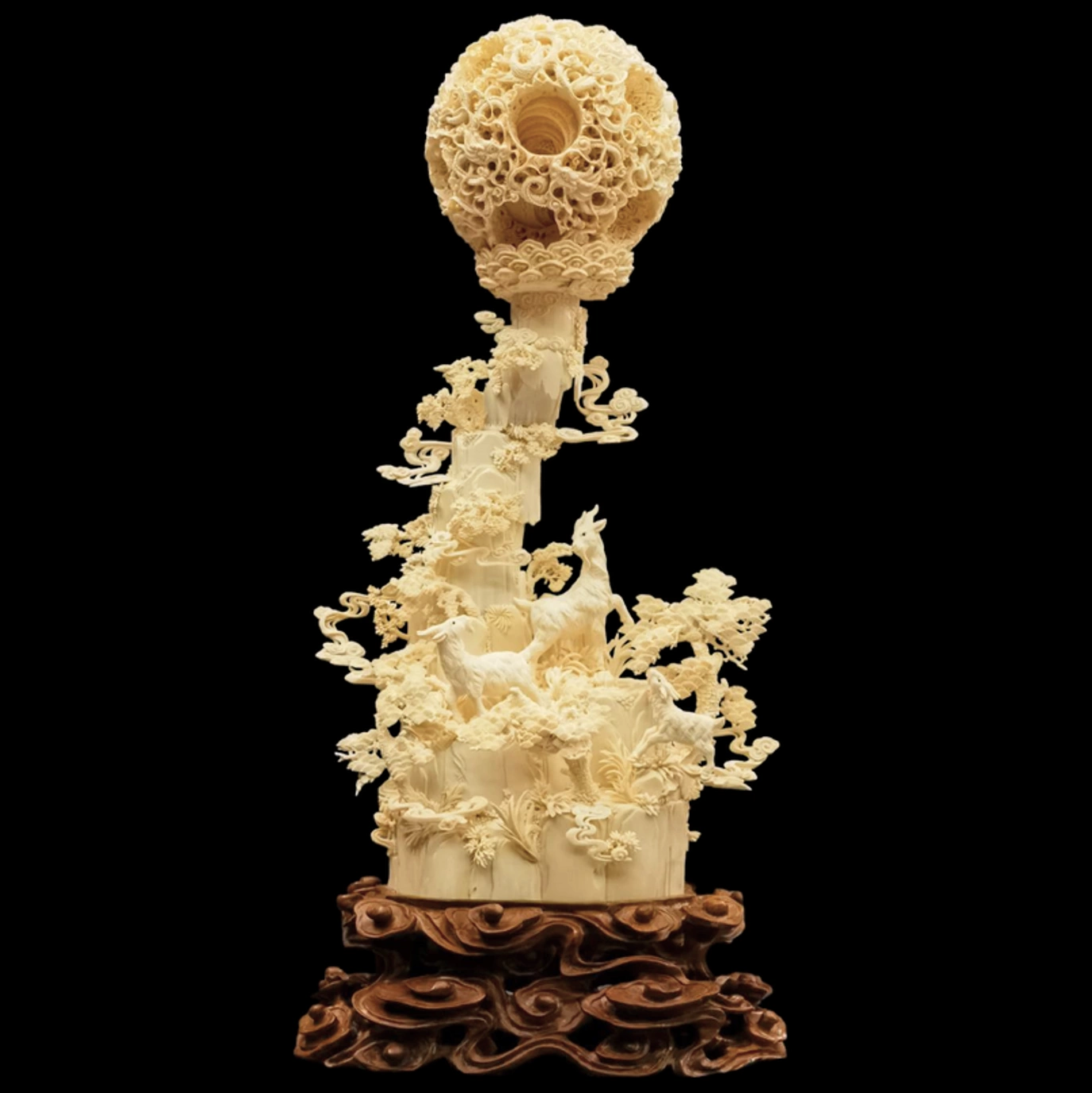 Композиция из кости с кантонским шаром "Успех трех коз"