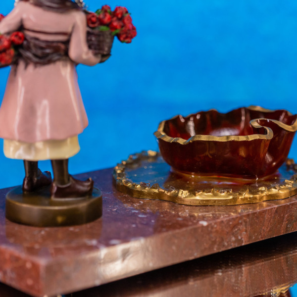 Композиция из мрамора и бронзы "Нежность" с вазочкой