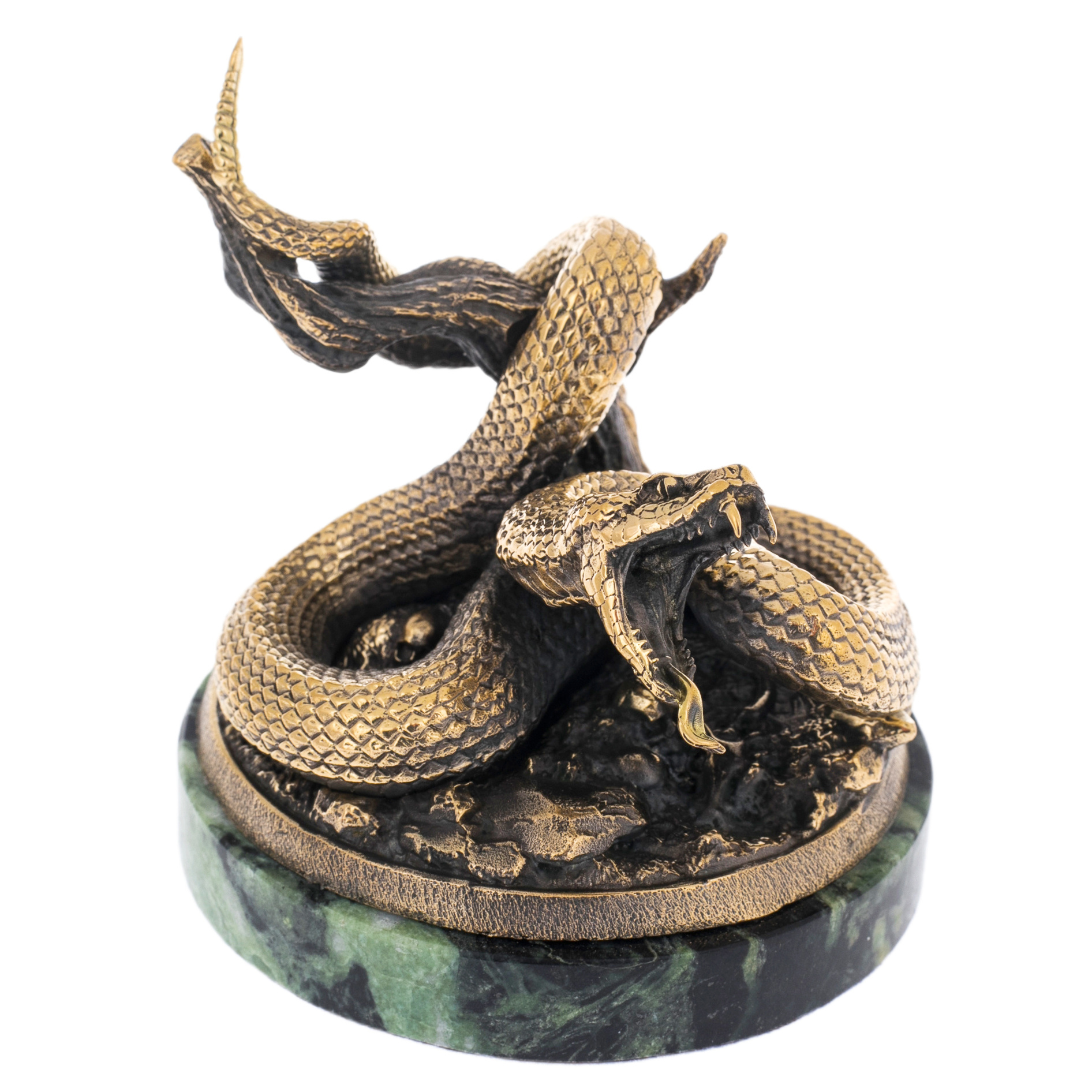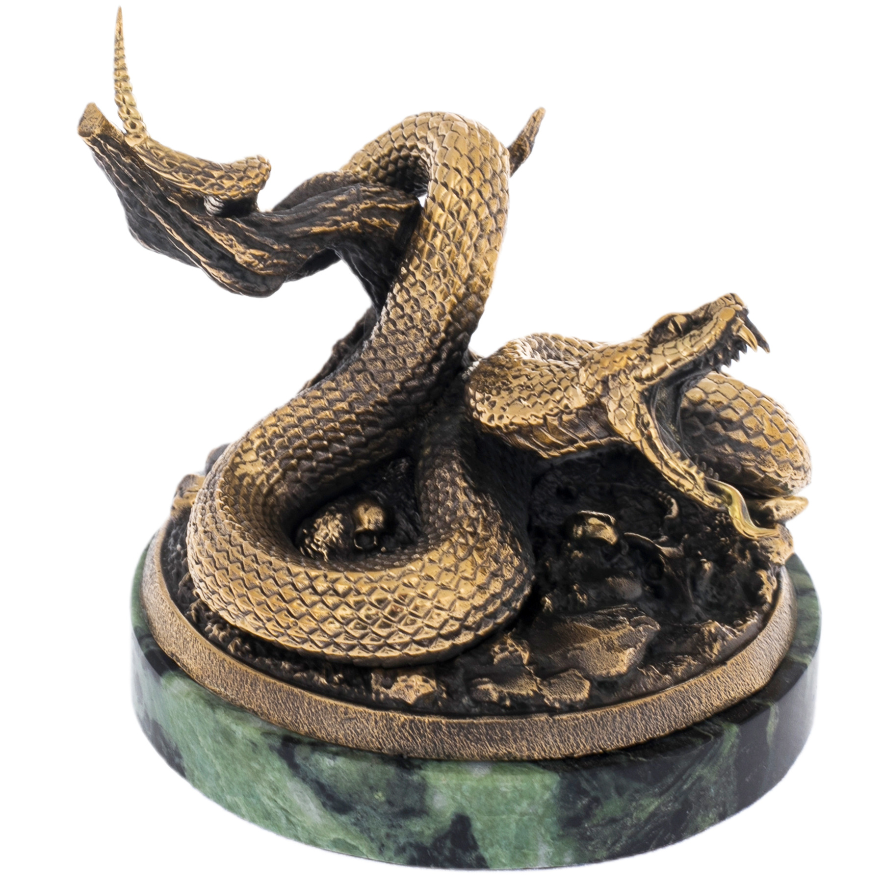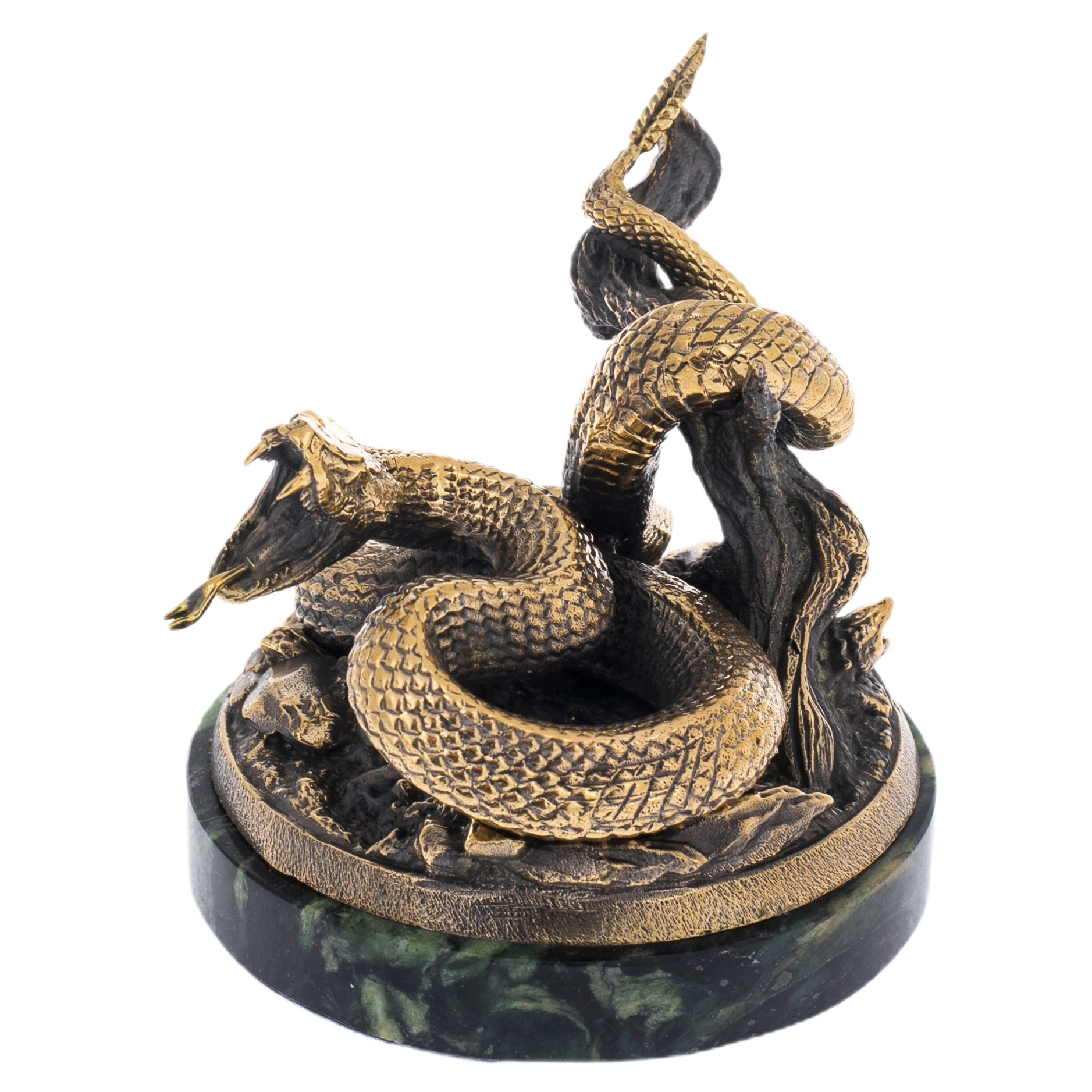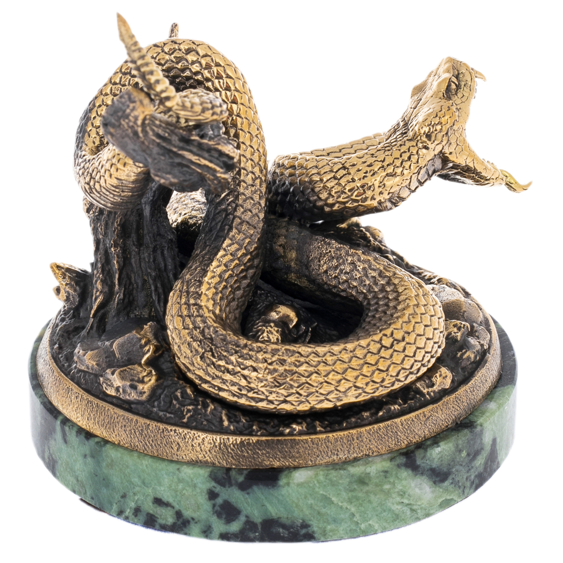 Скульптура из бронзы "Змея на дереве" на подставке из змеевика