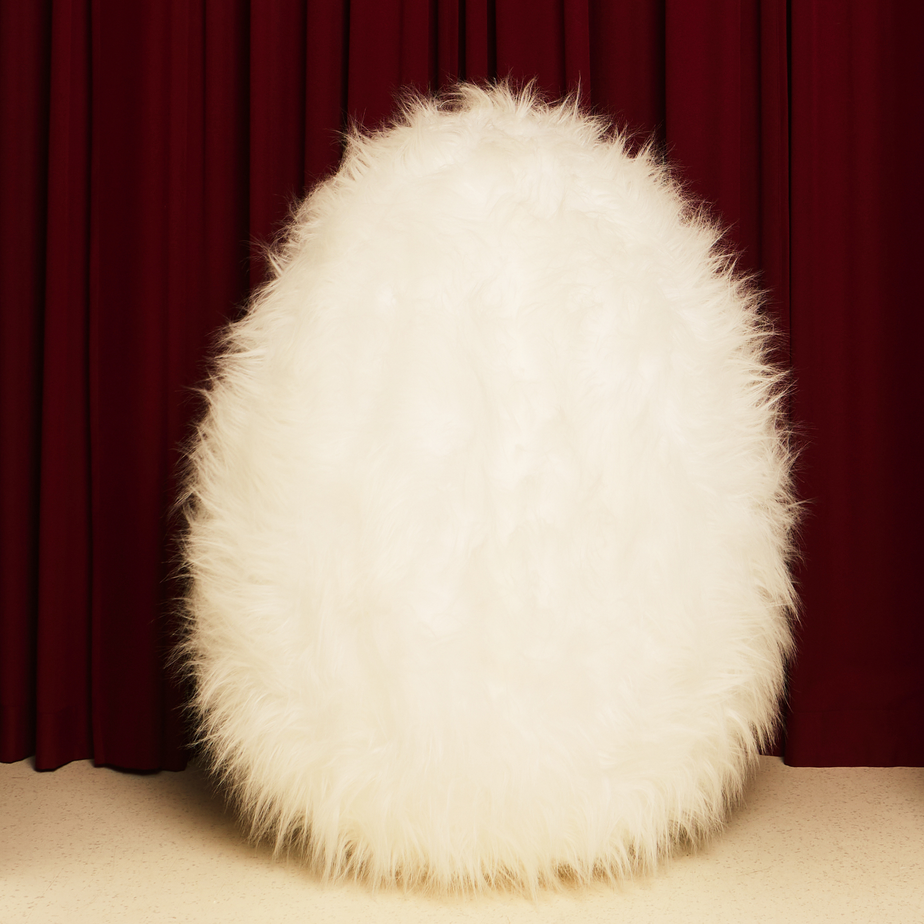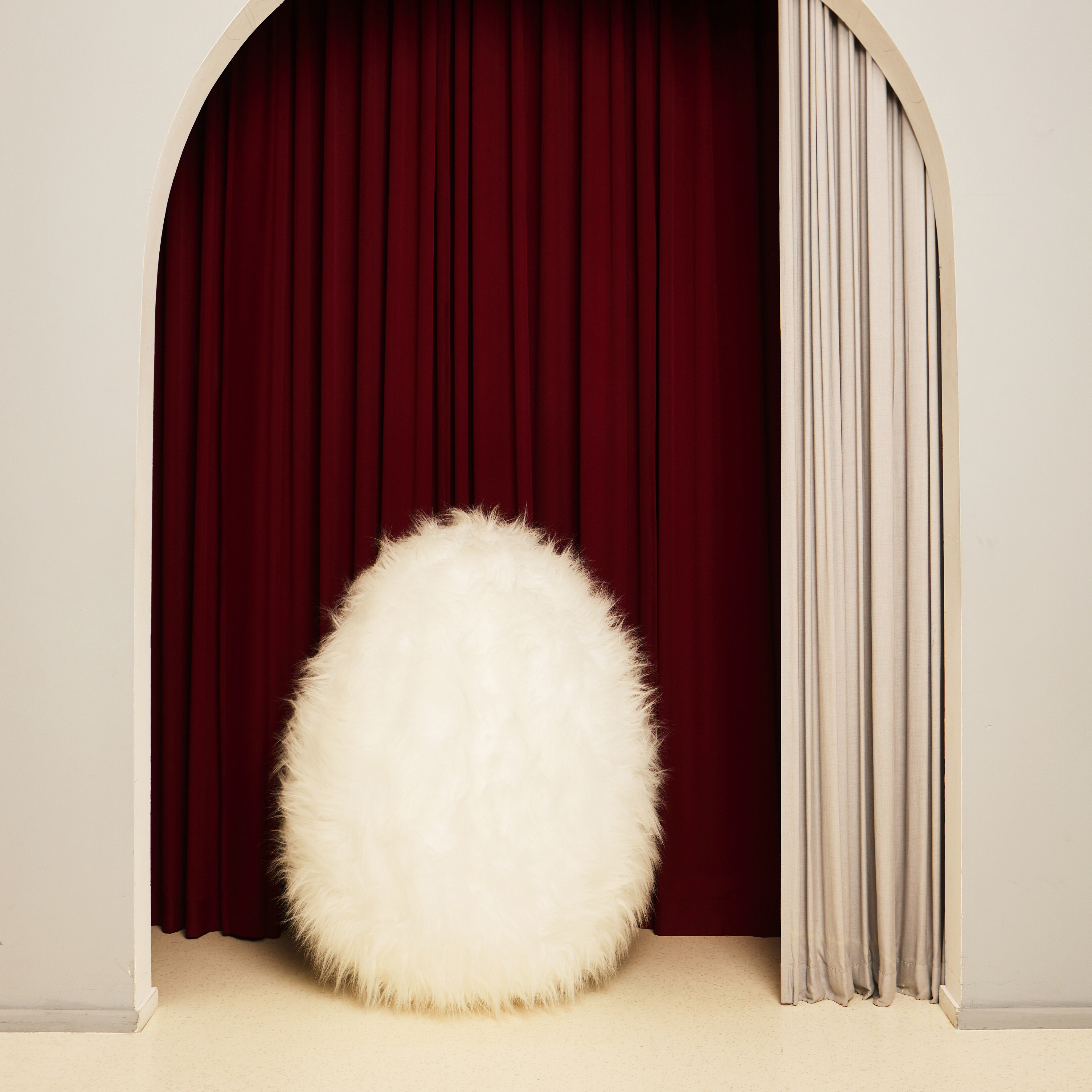 Скульптура “Яйцо пушистое” — нежный и сюрреалистичный арт-объект, в котором форма универсального символа жизни сочетается с неожиданной, почти инфантильной фактурой. Белоснежная поверхность, покрытая длинным мягким ворсом, вызывает ассоциации с теплом, безопасностью, объятиями и детской непосредственностью. На первый взгляд — это нечто из сказки или сна: предмет, который хочется не анализировать, а прижать к себе. Объект не говорит — он шепчет, не требует — он успокаивает. Он не утверждает смыслы, а даёт почувствовать пространство, где мягкость — это не слабость, а новая форма силы.