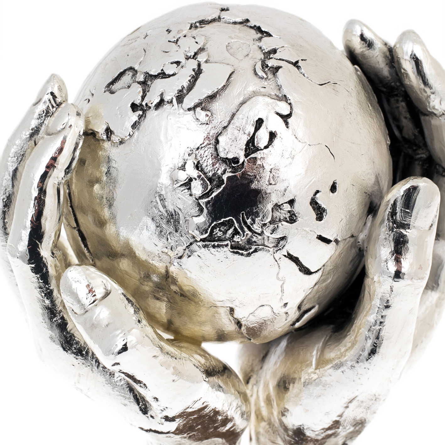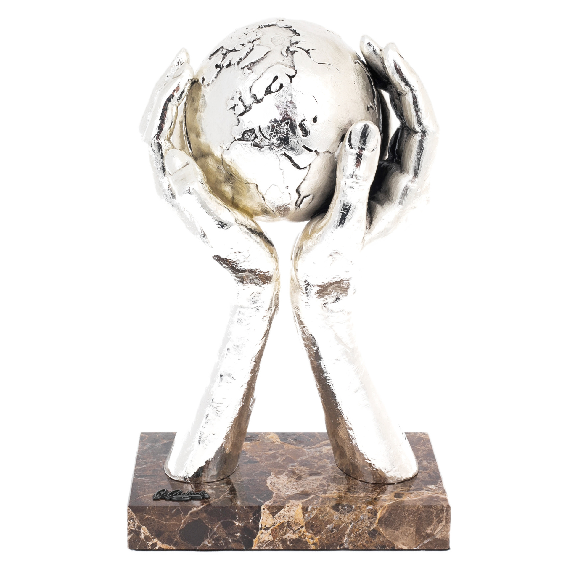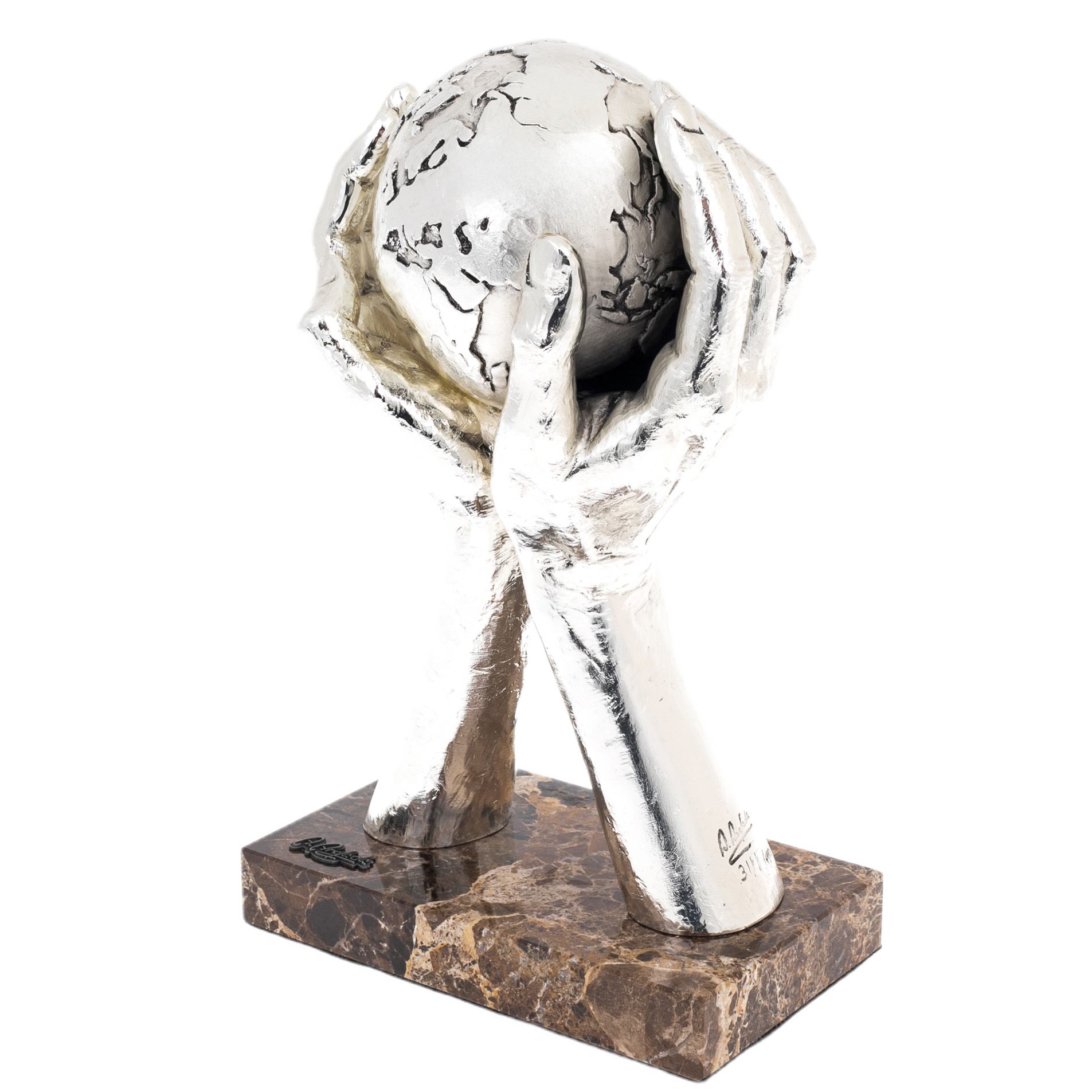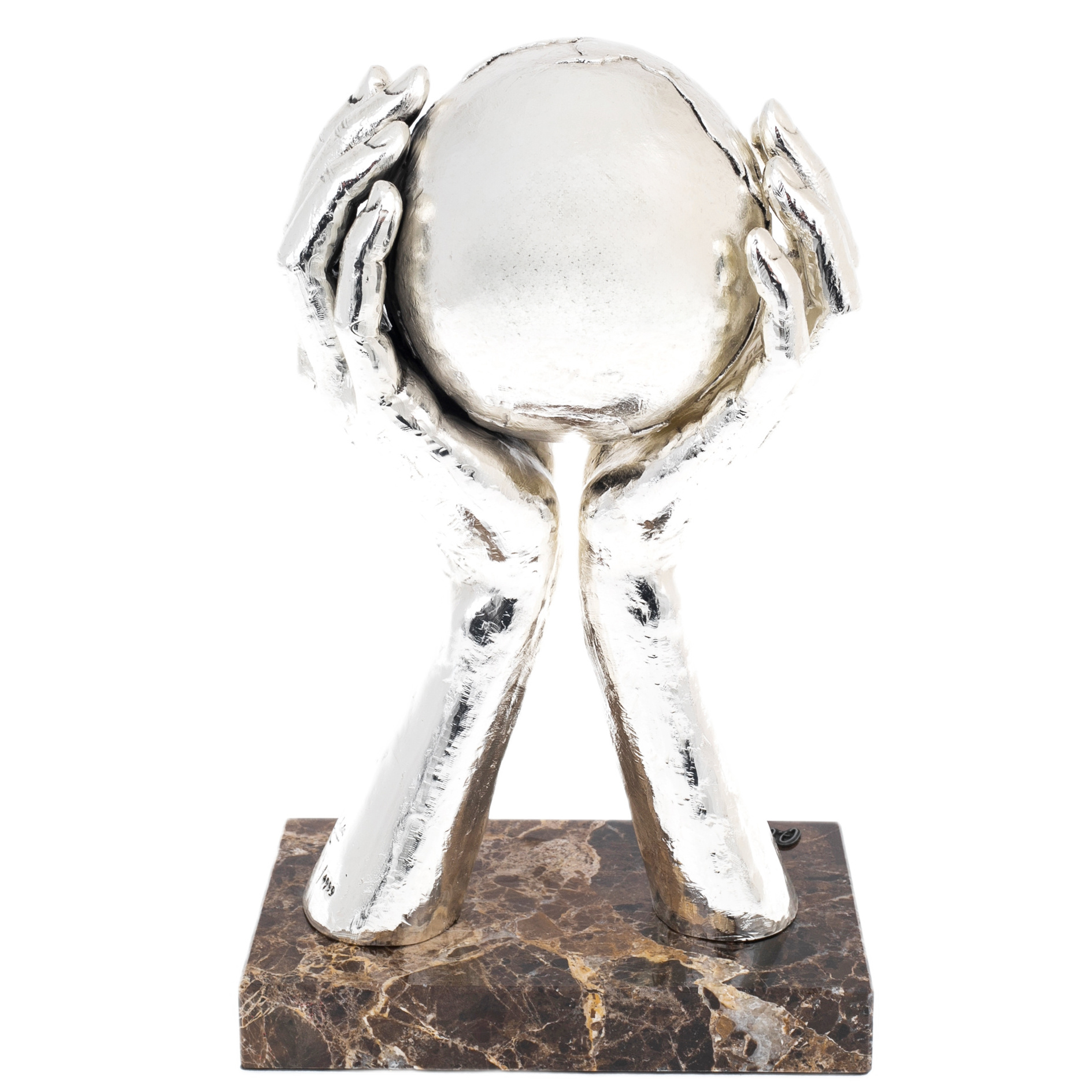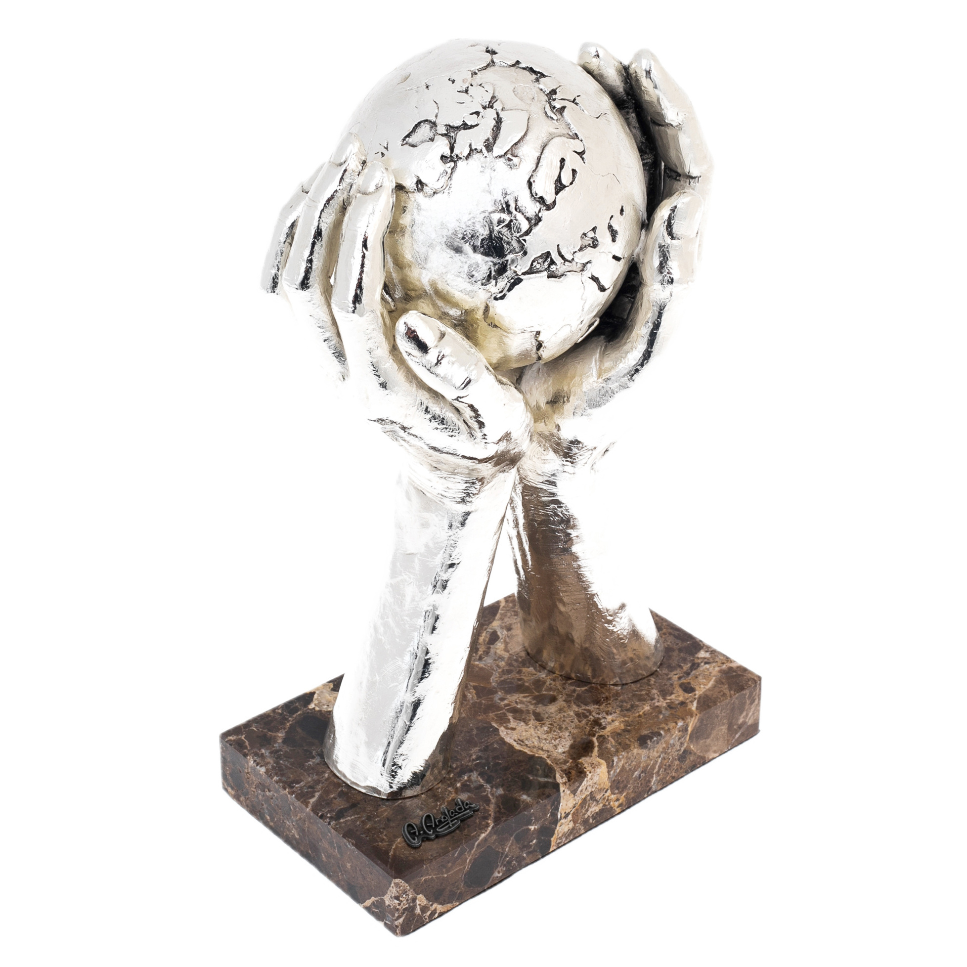 Скульптура из полистоуна и мрамора "Мир в твоих руках" с посеребрением