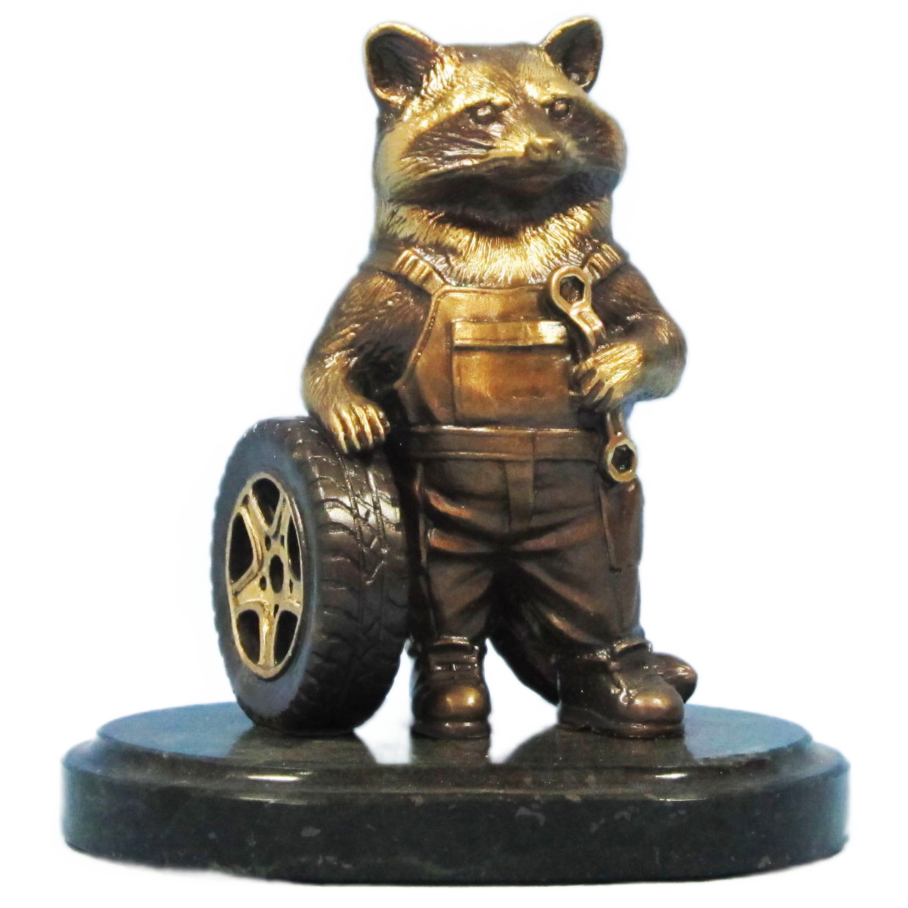 Статуэтка из бронзы и змеевика "Енот-шиномонтажник"