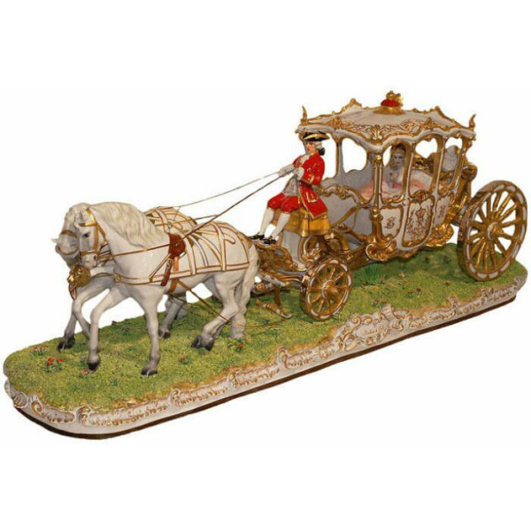 Фарфоровая статуэтка "Парадная карета" – настоящее воплощение роскоши и величия, созданное с невероятным мастерством итальянскими ремесленниками компании Elite & Fabris. Эта уникальная композиция, разработанная под вдохновением новаторских идей скульптора Алессандро Маджони, способна украсить интерьер любого дома, подчеркивая изысканный вкус и высокий статус ее владельца.