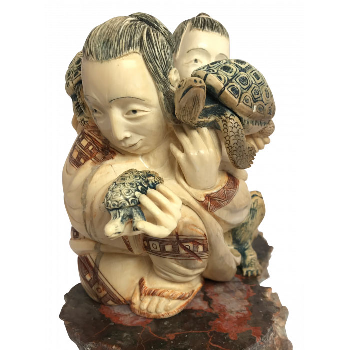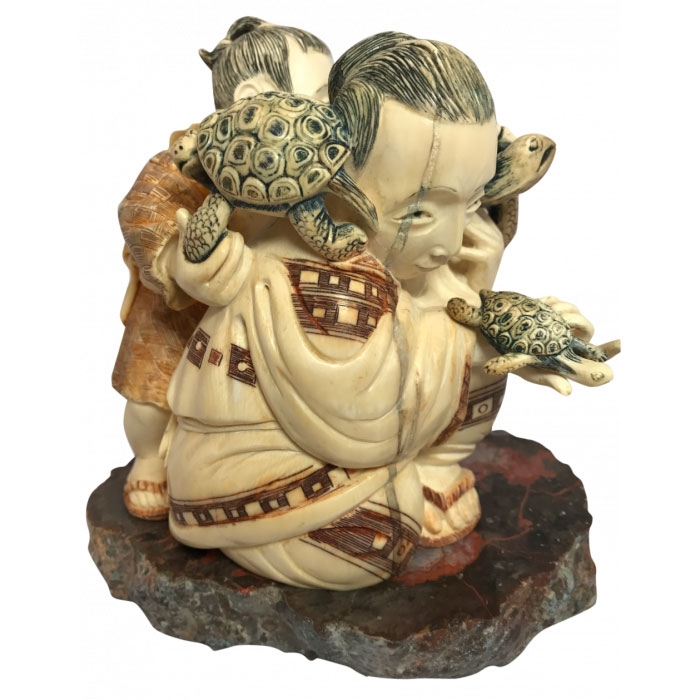 Сувенир из бивня мамонта "Отец и сын с черепахами"