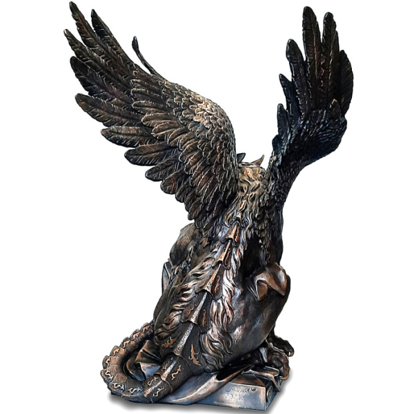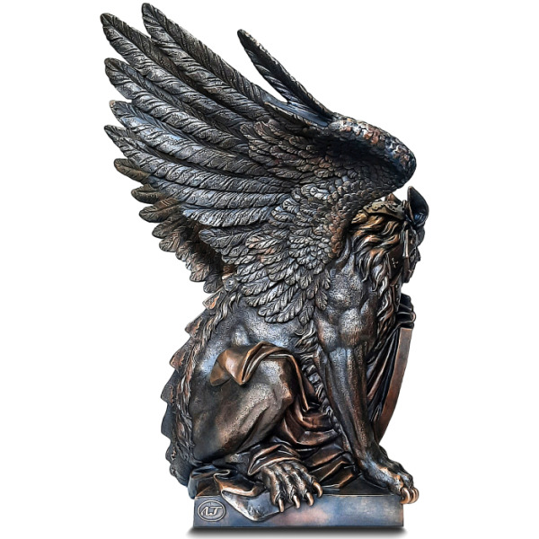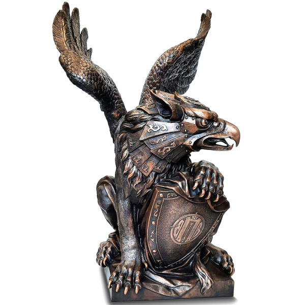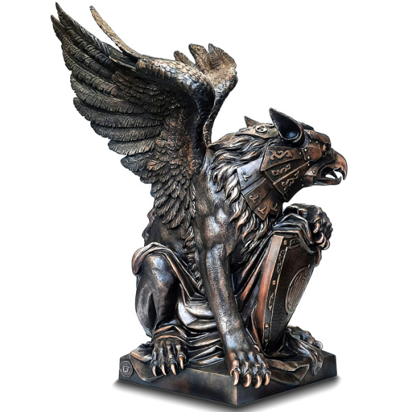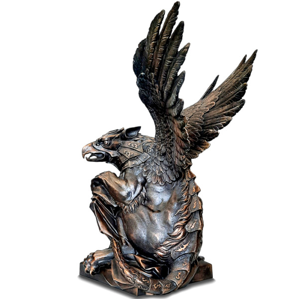 Грифон — хранитель тайн и символ абсолютной власти, слияние хищного разума и непреклонной силы. В этом бронзовом воплощении миф обретает форму: гордая осанка, вытянутые когти, готовые впиться в гранит времени, и пронизывающий взгляд, несущий в себе мудрость веков. Размах крыльев подчёркивает его прирождённое право парить над миром, смотреть сверху вниз на тех, кто лишь мечтает о величии.