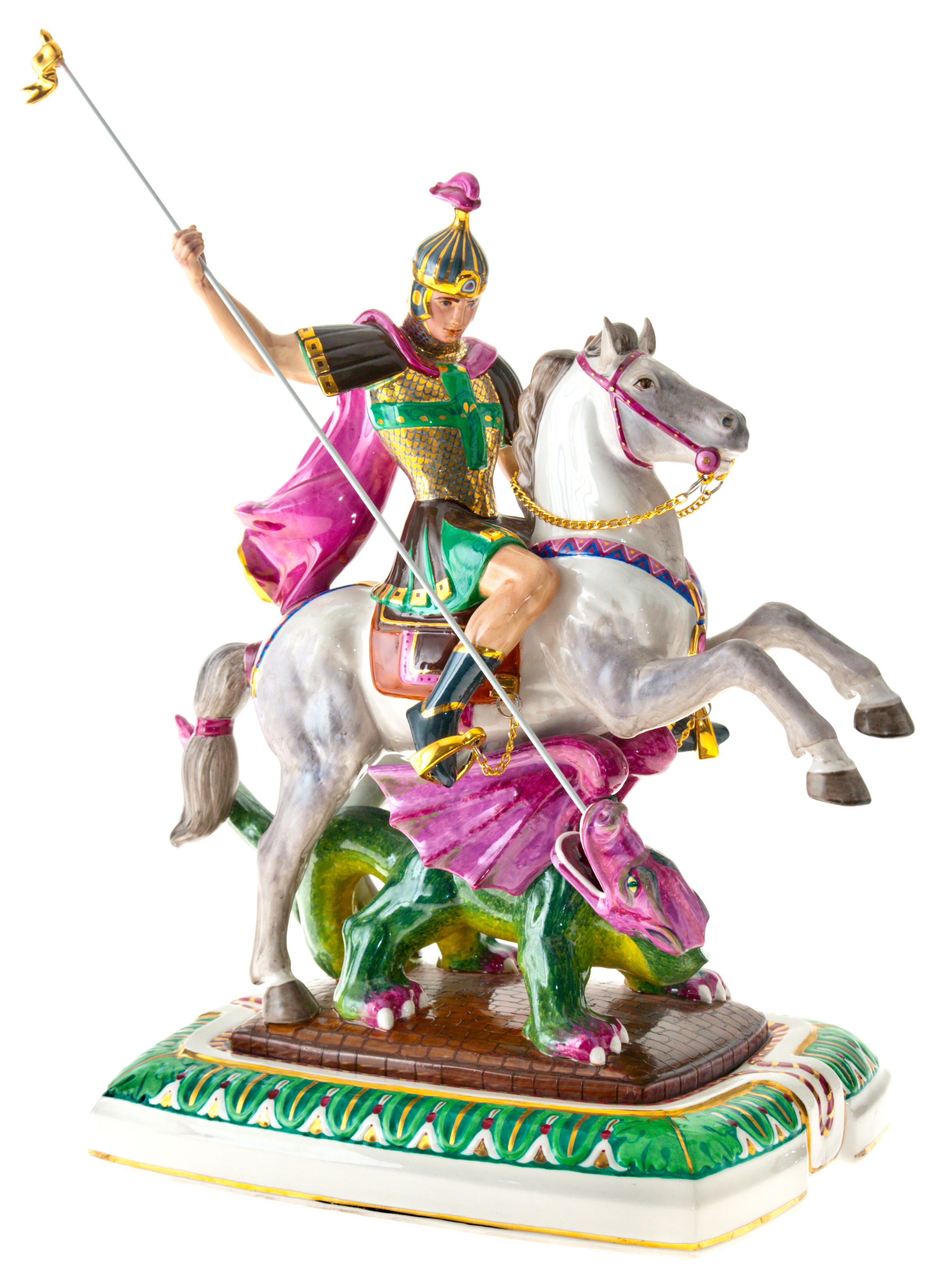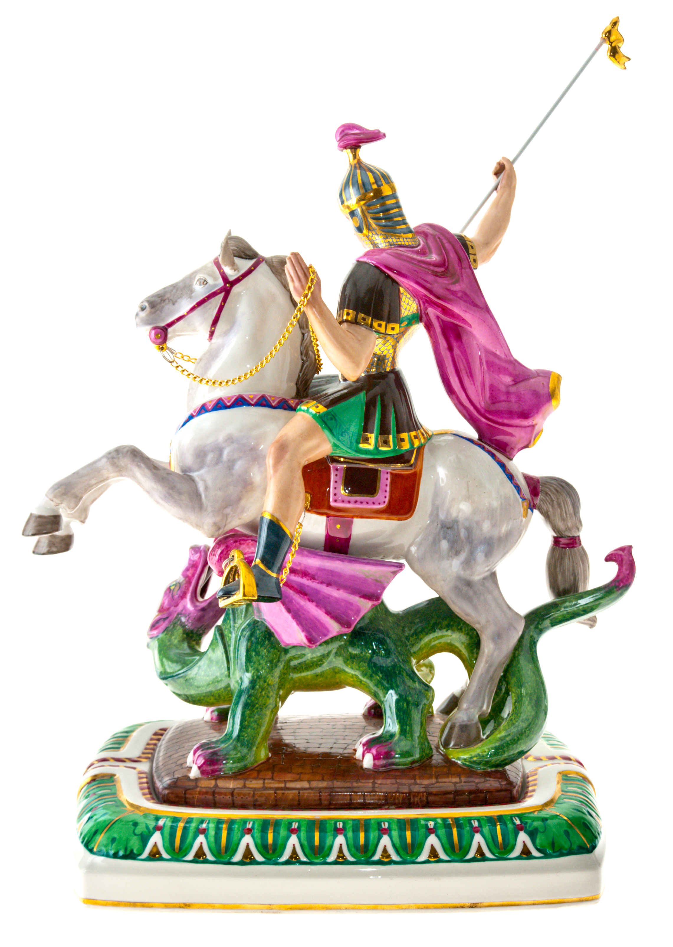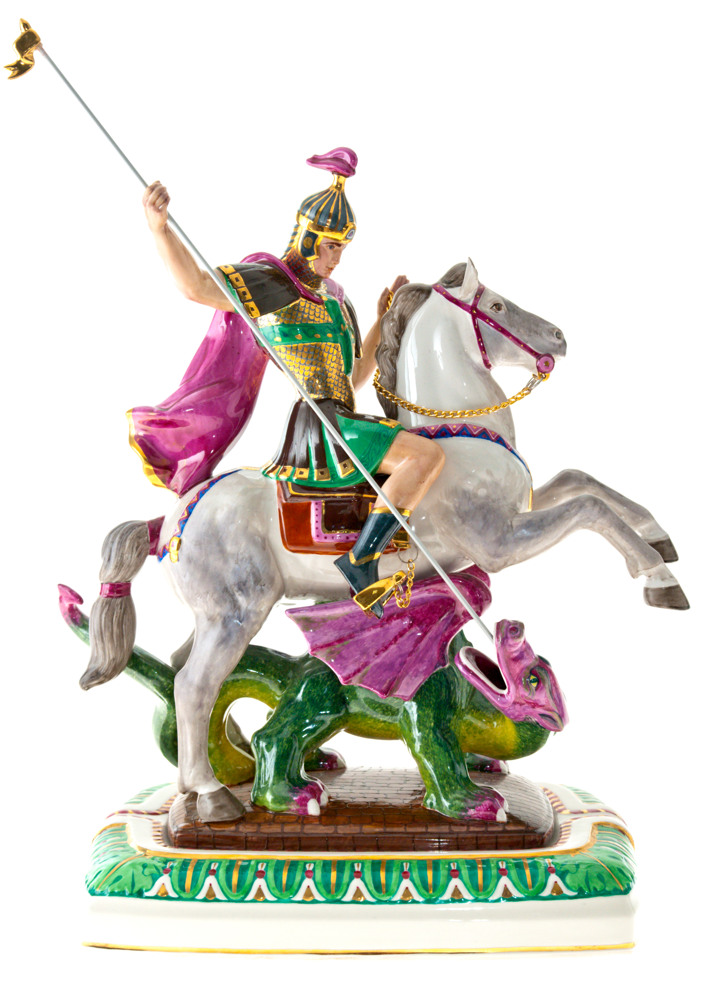 Скульптура "Георгий - Победоносец" с надглазурной росписью