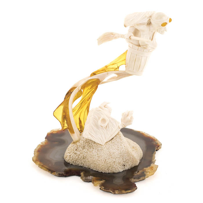Материалы: бивень мамонта, янтарь, мрамор.
