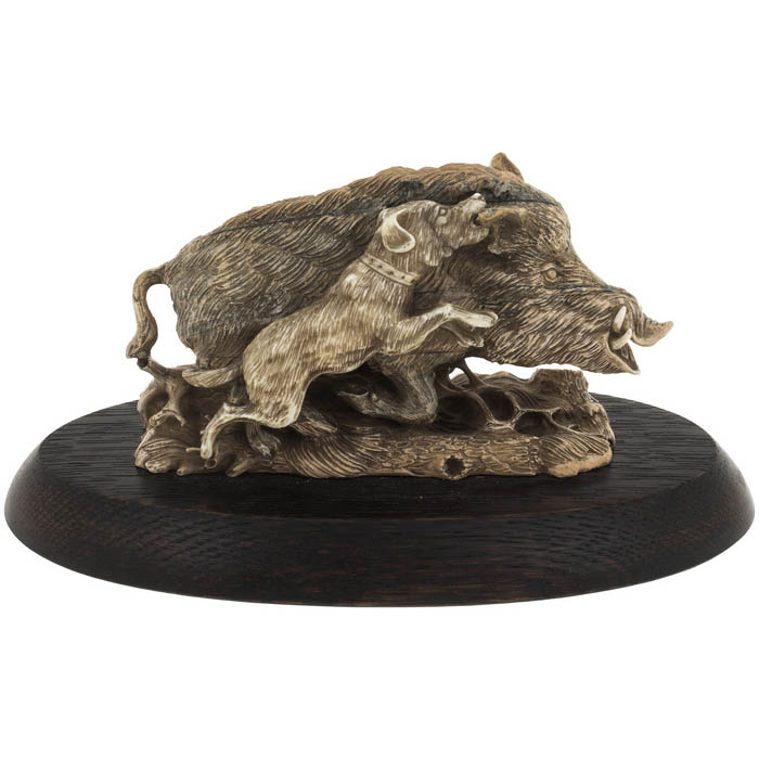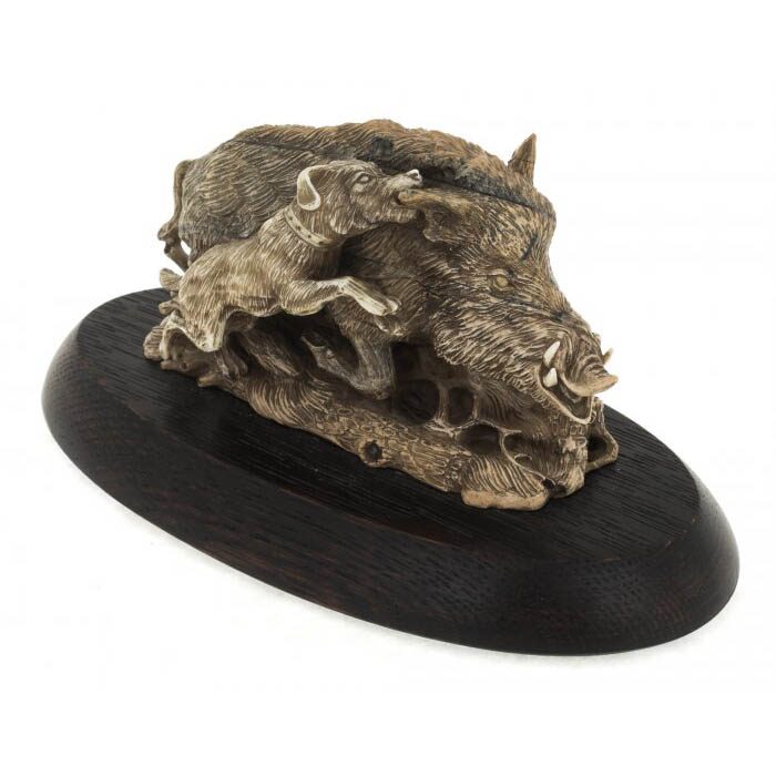 Изделие из бивня мамонта "Охота на кабана с ягдтерьером"