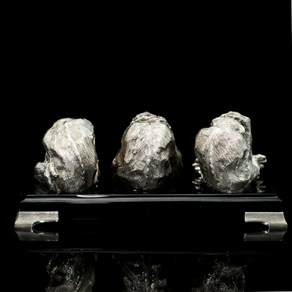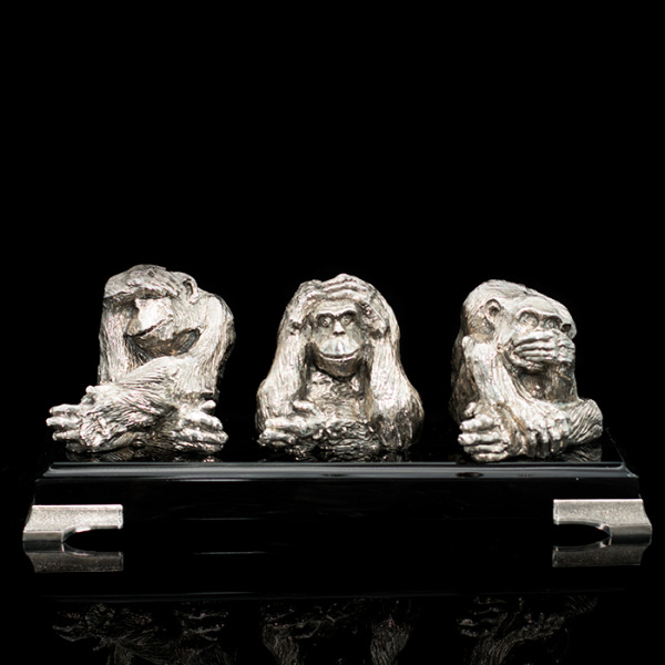 Скульптура "Три обезьяны" выполнена из латуни в сочетании с камнем нефрит.