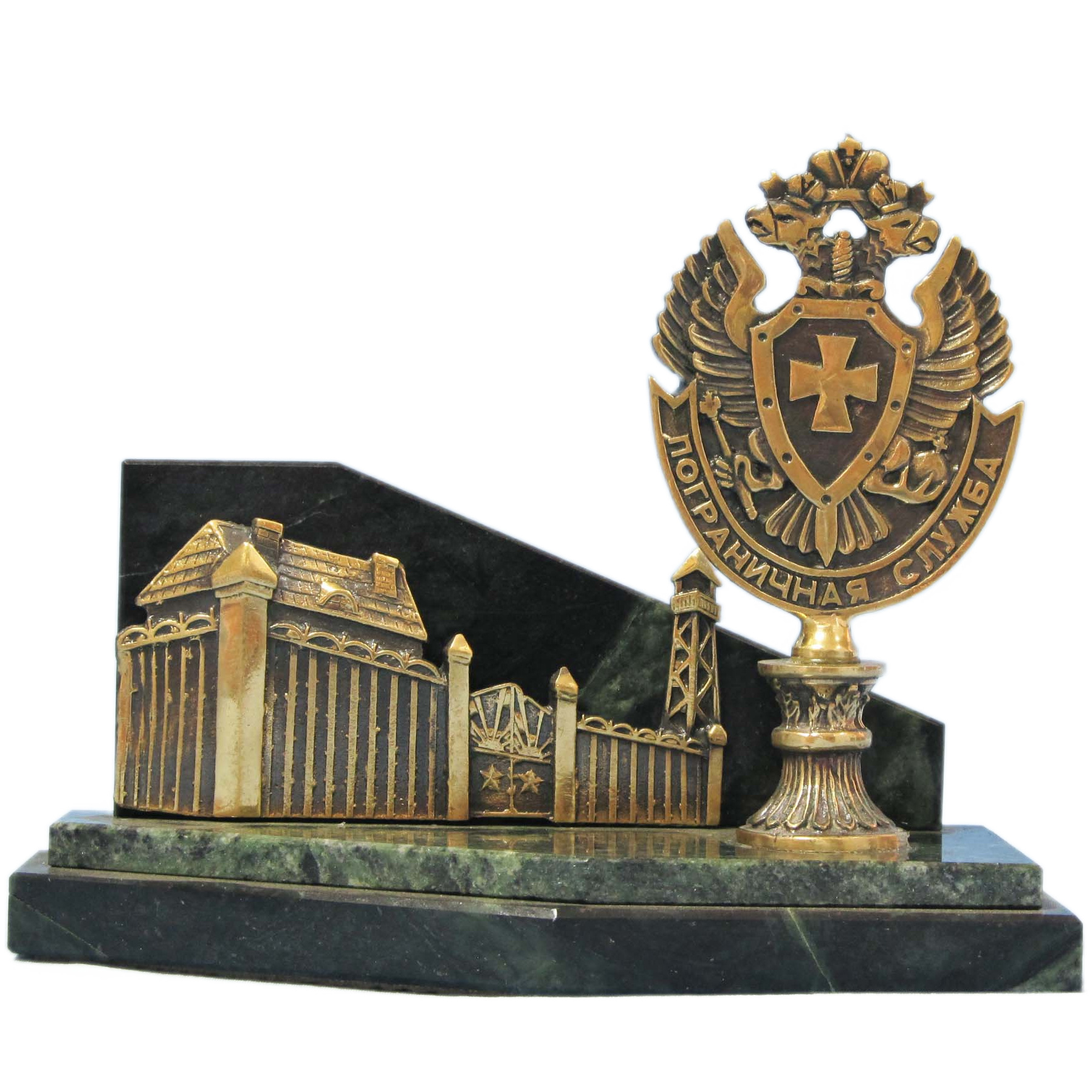 Сувенир из бронзы и змеевика "Граница"