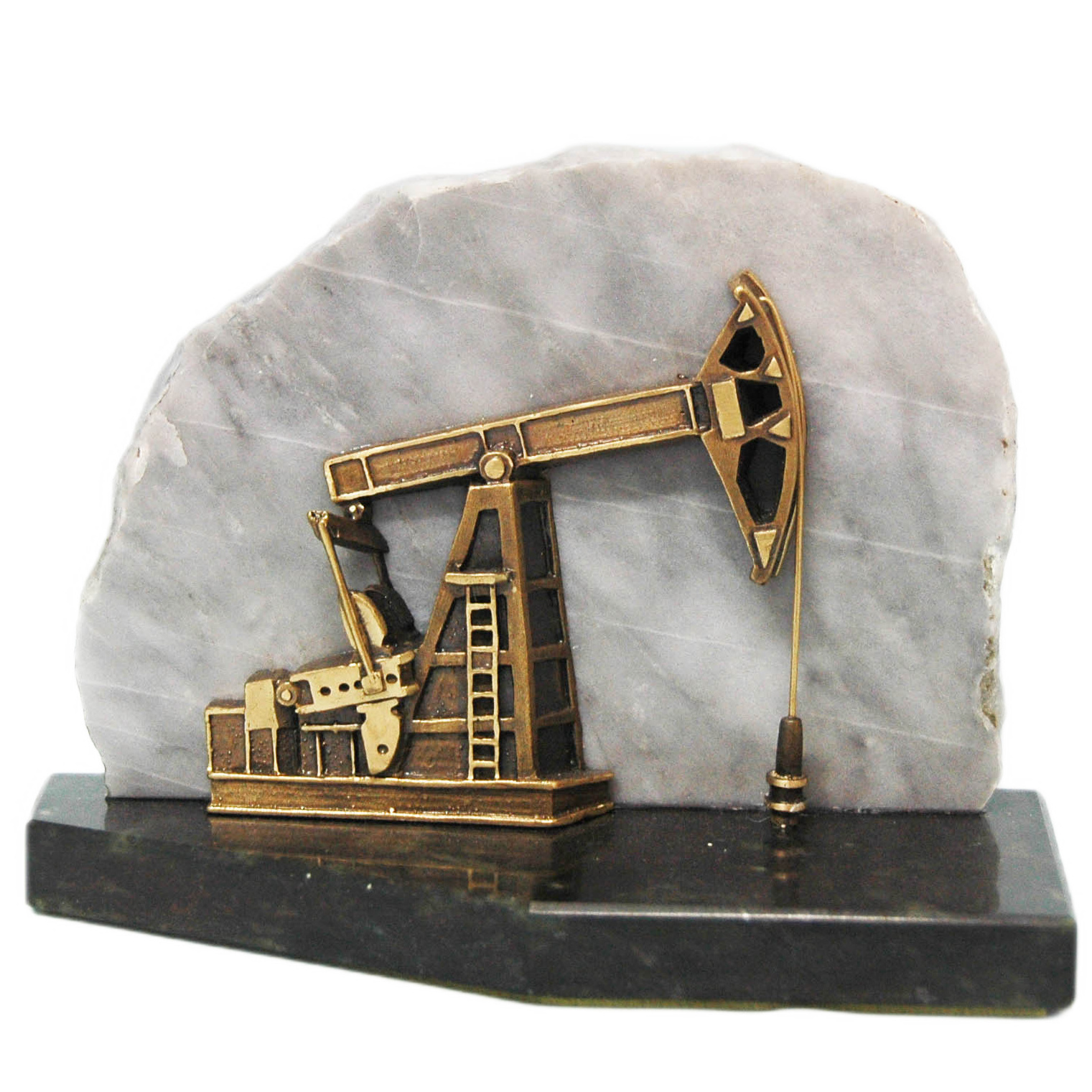 Сувенир из бронзы, мрамора и змеевика "Нефтяная качалка"