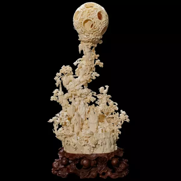 Композиция из бивня мамонта с кантонским шаром "Цзисин Гаочжао"