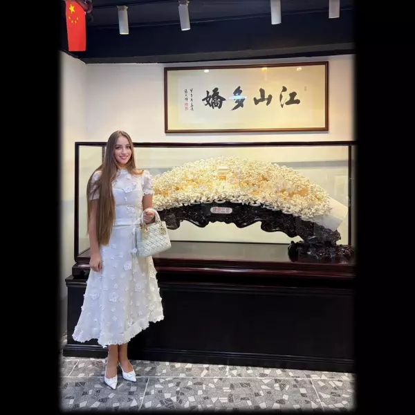 Работа спроектирована и выполнена с учётом естественной формы кости, благодаря чему композиция органично раскрывает живописные пейзажи гор Линнань. Элегантные оттенки, пышная растительность и смена времён года создают ощущение полноты жизни, наполненной ароматом цветов и щебетом птиц. Роскошные пионы распускаются во всём великолепии, усиливая мотив изобилия и процветания.