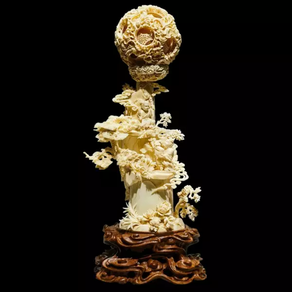 Композиция из бивня мамонта с кантонским шаром "Гармония. Эрксиканская правая колонна"