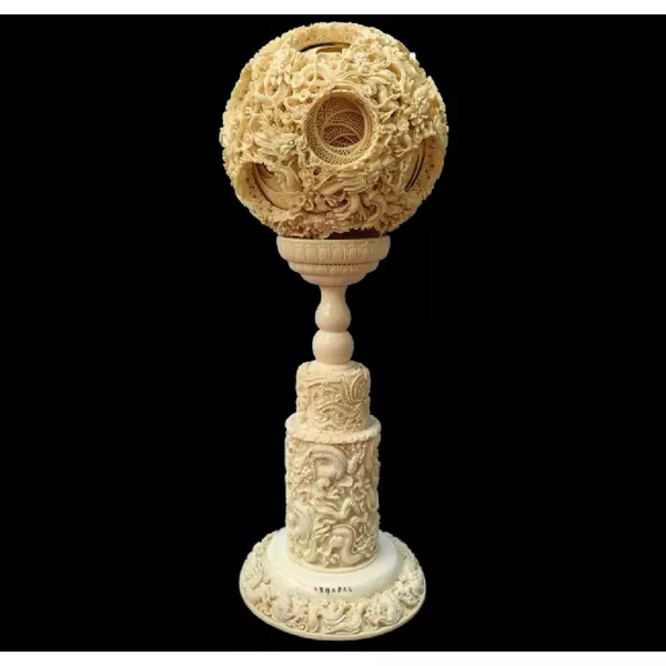 Кантонский шар из слоновой кости, известный также как «призрачный шар», — один из наиболее характерных видов гуанчжоуской резьбы, сформировавшийся ещё в эпоху династии Мин. Его уникальность заключается в том, что цельный фрагмент кости выдалбливается в многослойную сферу с переплетающимися ажурными оболочками. Каждый слой тонко проработан собственным сквозным орнаментом и может свободно вращаться внутри последующего, создавая впечатление лёгкости и почти невесомой прозрачности.
