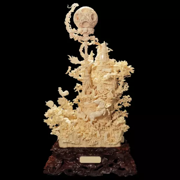 Композиция из бивня мамонта с кантонским шаром "Процветающая Вселенная. В погоне за мечтами"