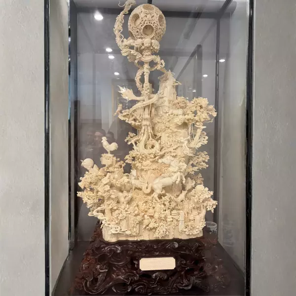 Кантонский шар из слоновой кости, известный также как «призрачный шар», — один из наиболее характерных видов гуанчжоуской резьбы, сформировавшийся ещё в эпоху династии Мин. Его уникальность заключается в том, что цельный фрагмент кости выдалбливается в многослойную сферу с переплетающимися ажурными оболочками. Каждый слой тонко проработан собственным сквозным орнаментом и может свободно вращаться внутри последующего, создавая впечатление лёгкости и почти невесомой прозрачности.
