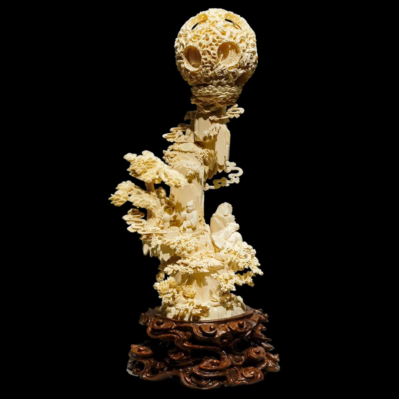 Кантонский шар из слоновой кости, известный также как «призрачный шар», — один из наиболее характерных видов гуанчжоуской резьбы, сформировавшийся ещё в эпоху династии Мин. Его уникальность заключается в том, что цельный фрагмент кости выдалбливается в многослойную сферу с переплетающимися ажурными оболочками. Каждый слой тонко проработан собственным сквозным орнаментом и может свободно вращаться внутри последующего, создавая впечатление лёгкости и почти невесомой прозрачности.