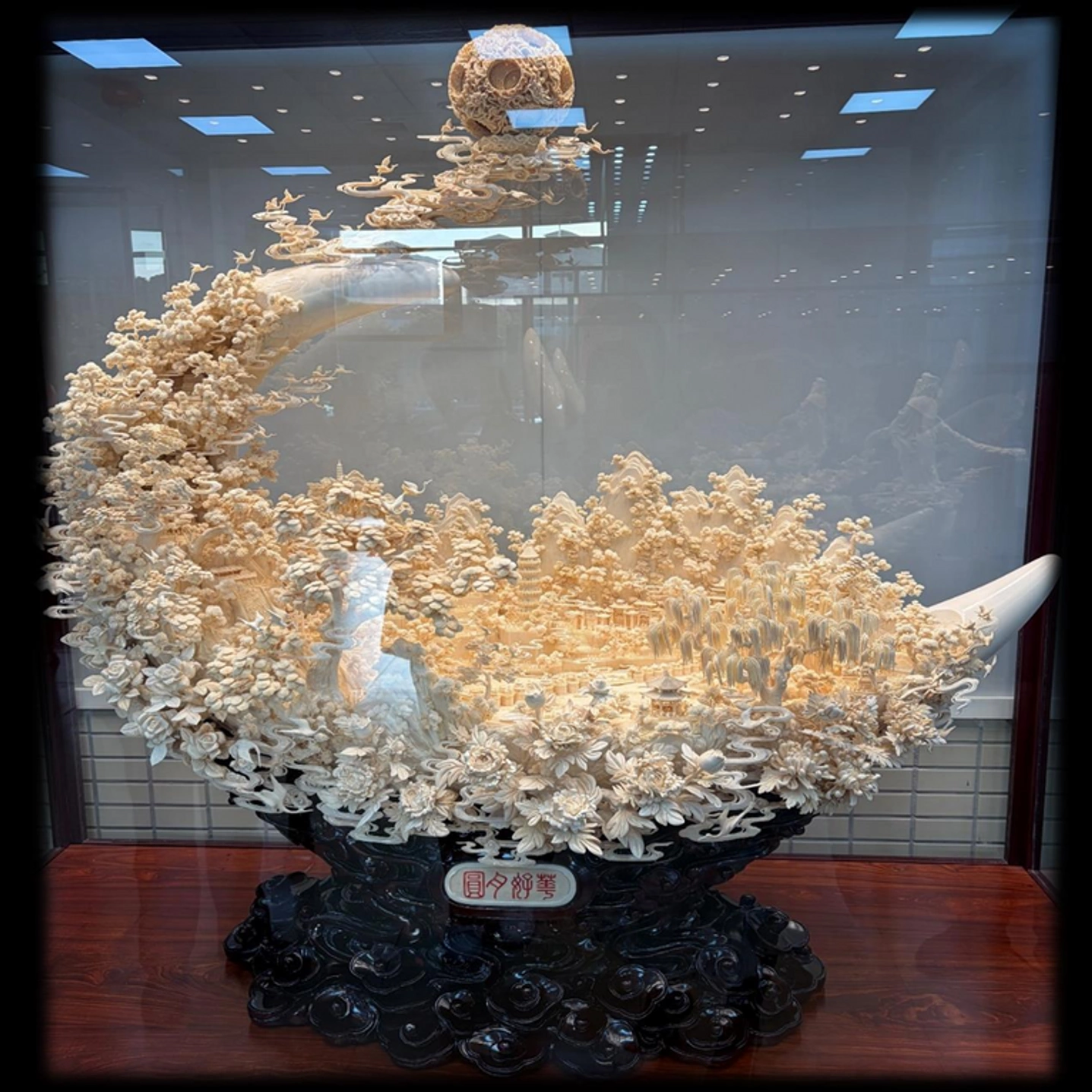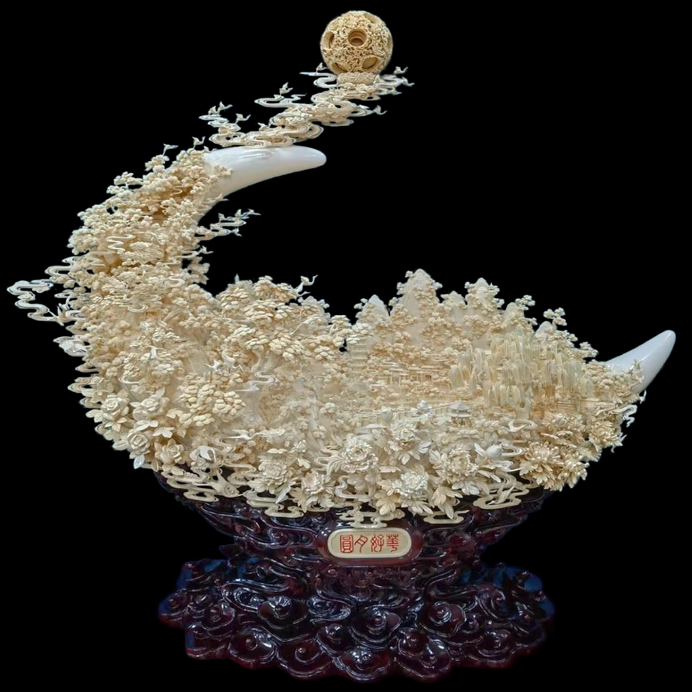 Композиция из бивня мамонта "Красивый цветок и полная луна"