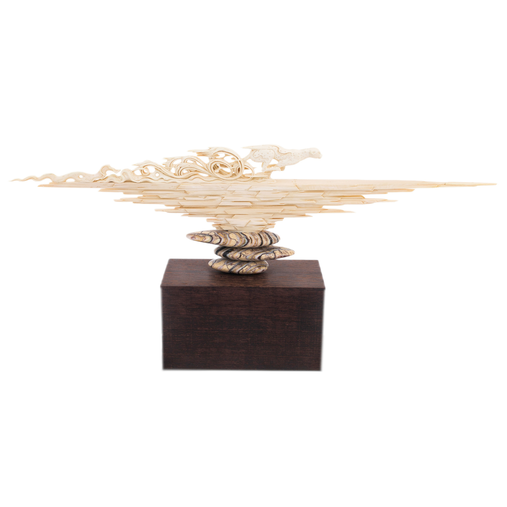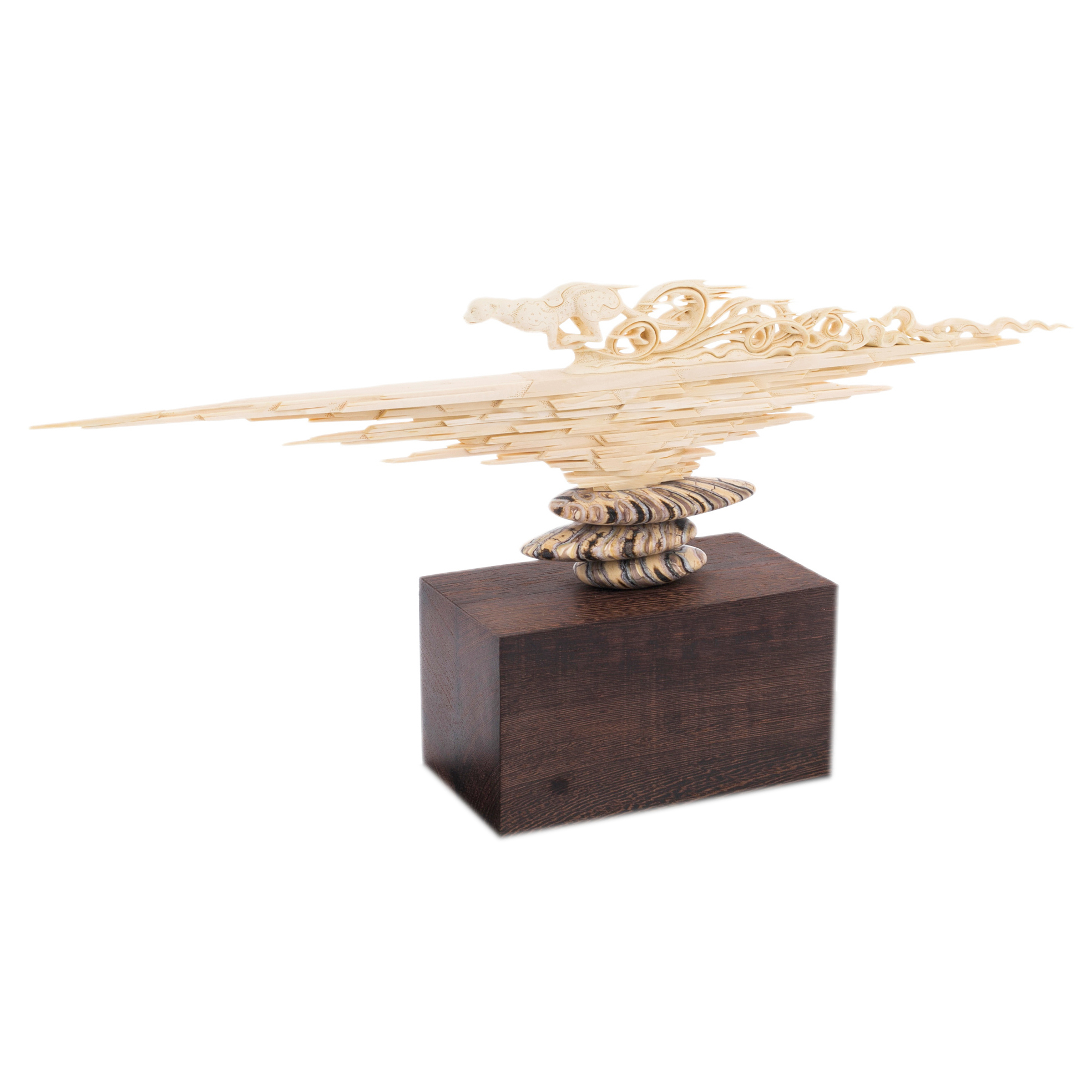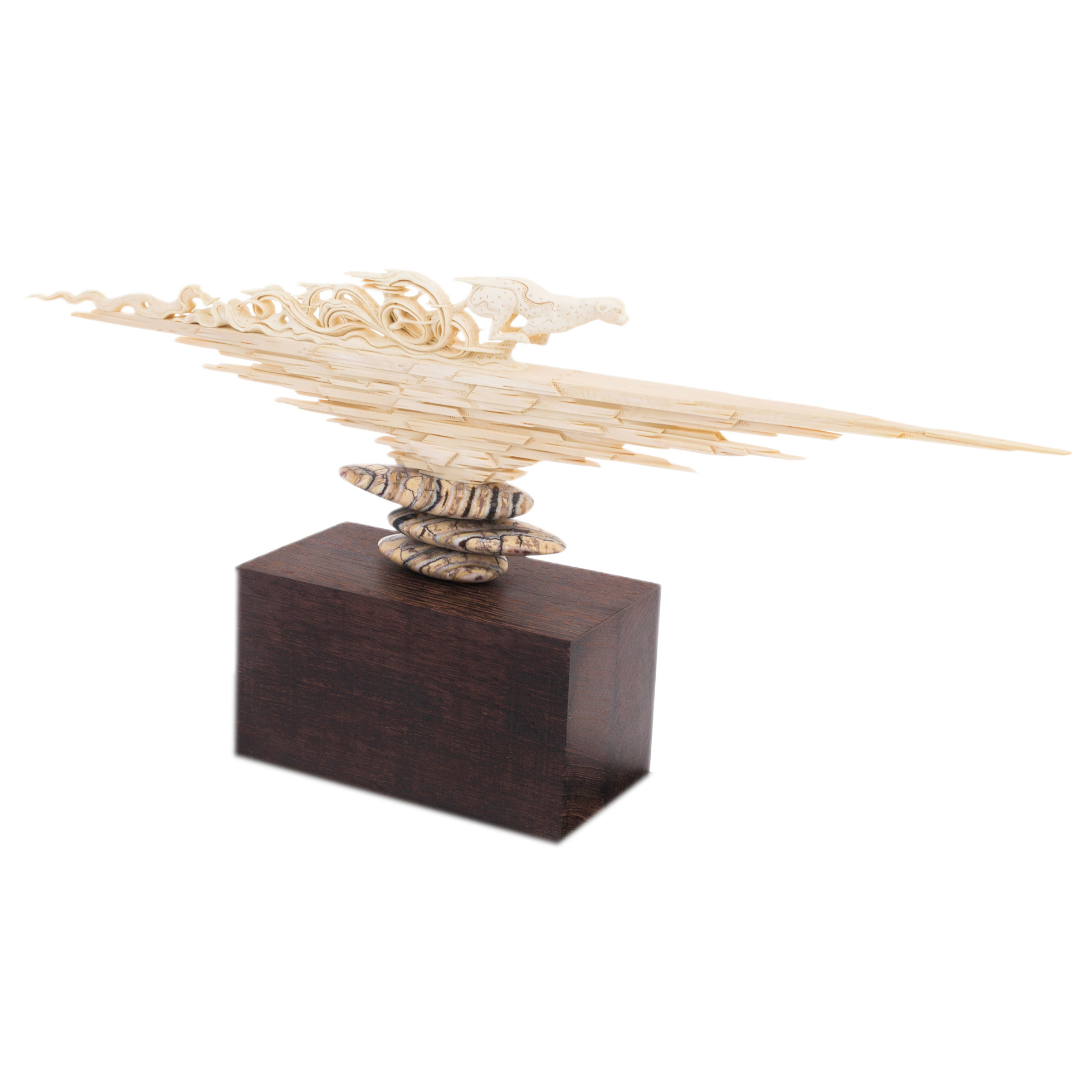Высокохудожественная скульптура гепарда создана из одного из самых редких материалов на земле — бивня мамонта, древнего реликта, вобравшего в себя тысячелетия. Этот материал — сама суть времени, память о ледниковых эпохах, когда лишь сильнейшие могли выжить. Теперь он обретает новую форму, запечатлевая скорость, стремление и неукротимую волю — и в то же время легкость и стремительность, застывшие в мгновении.