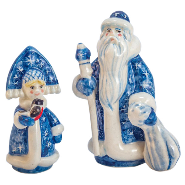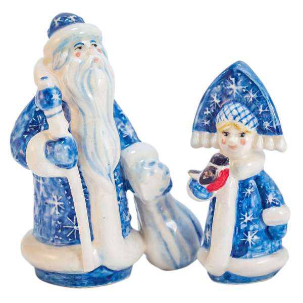 Набор новогодних фигурок из фарфора "Дед Мороз и Снегурочка"Набор новогодних фигурок из фарфора "Дед Мороз и Снегурочка"Оригинальные формы, использование ручной росписи замысловатого геометрического орнамента в сочетании с высокой техникой мазка придают изделиям неповторимый колорит и привлекательность, а небольшой объем производства и сугубо индивидуальная роспись делают изделия особо уникальными. Цвет росписи может соответствовать корпоративным цветам компании.