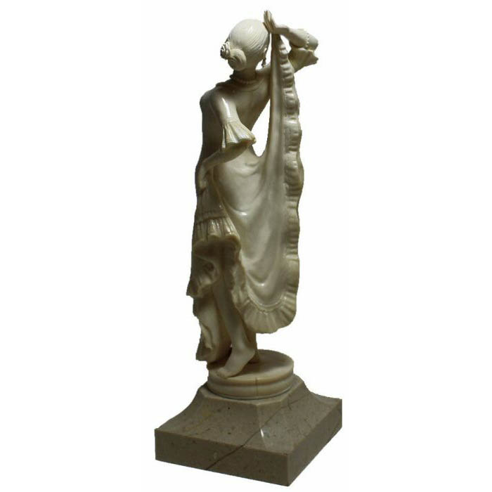 Тончайшая грация, воплощенная в застывшем движении. Эта скульптура — не просто образ, а гимн легкости, пластике, моменту, когда время задерживает дыхание, наблюдая за танцовщицей. Ее силуэт — отражение высшего искусства владения своим телом, где каждый изгиб подчинен гармонии, а каждое движение превращается в символ. Ее голова откинута назад, рука взметнулась вверх, будто ловя неуловимый ритм музыки, звучащей лишь для нее одной. Это не просто танец, а полет души, воплощенный в форме, созданной из вечного материала.